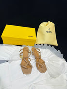 FENDI FFOLD MEDIUM-HEELED 55 MM SANDALS IN BRONZE BROWN LAMBSKIN WITH GOLD HARDWARE
