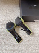 HIGH HEEL SLIDES IN TEA GREEN VELVET
