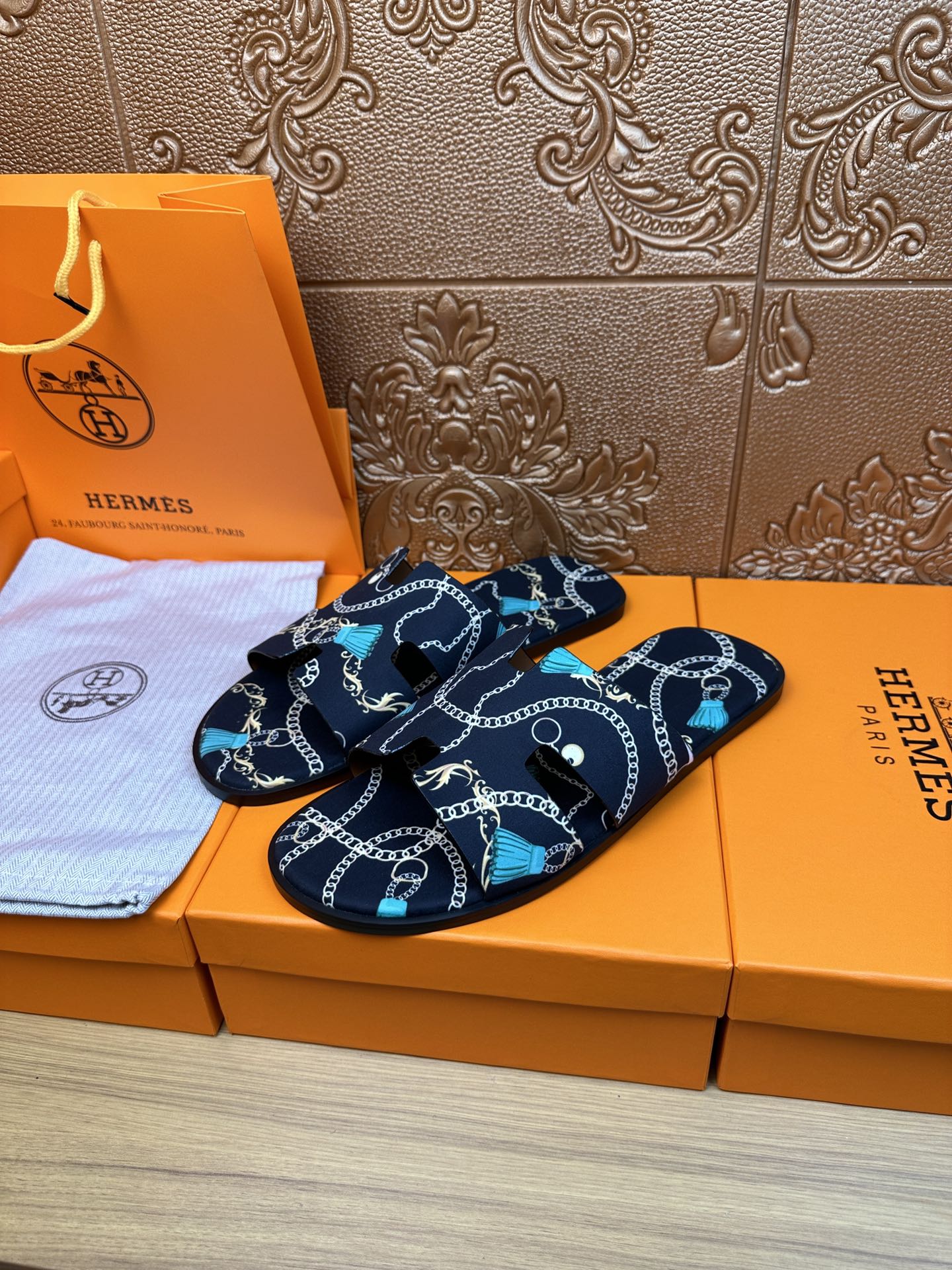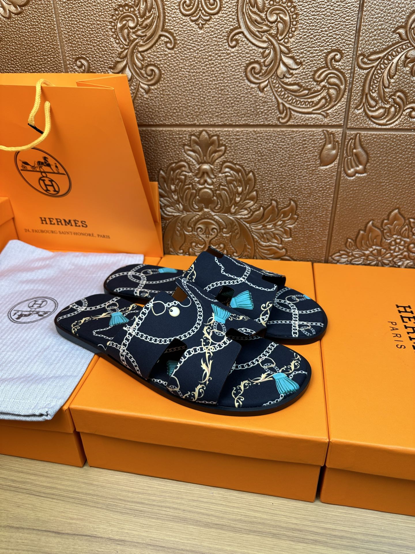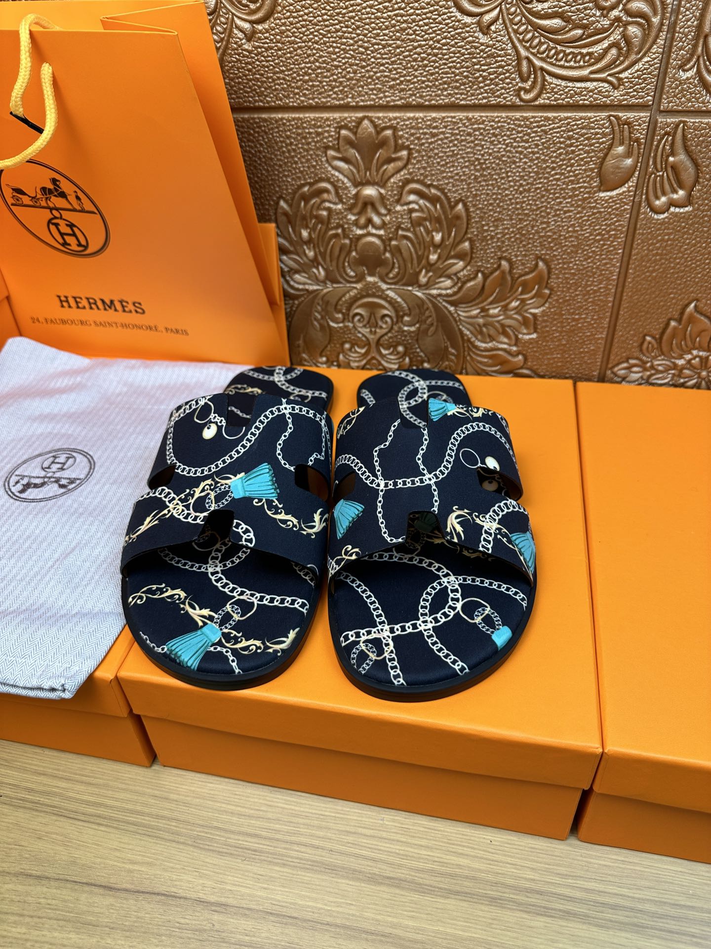 HM IZMIR SANDAL DENIM COLOR SUEDE WITH CHAIN MOTIF