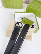 INTERLOCKING G BLACK BUCKLE 40MM BLACK LEAHTER