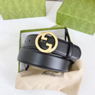 INTERLOCKING G GOLD BUCKLE 40MM BLACK LEAHTER