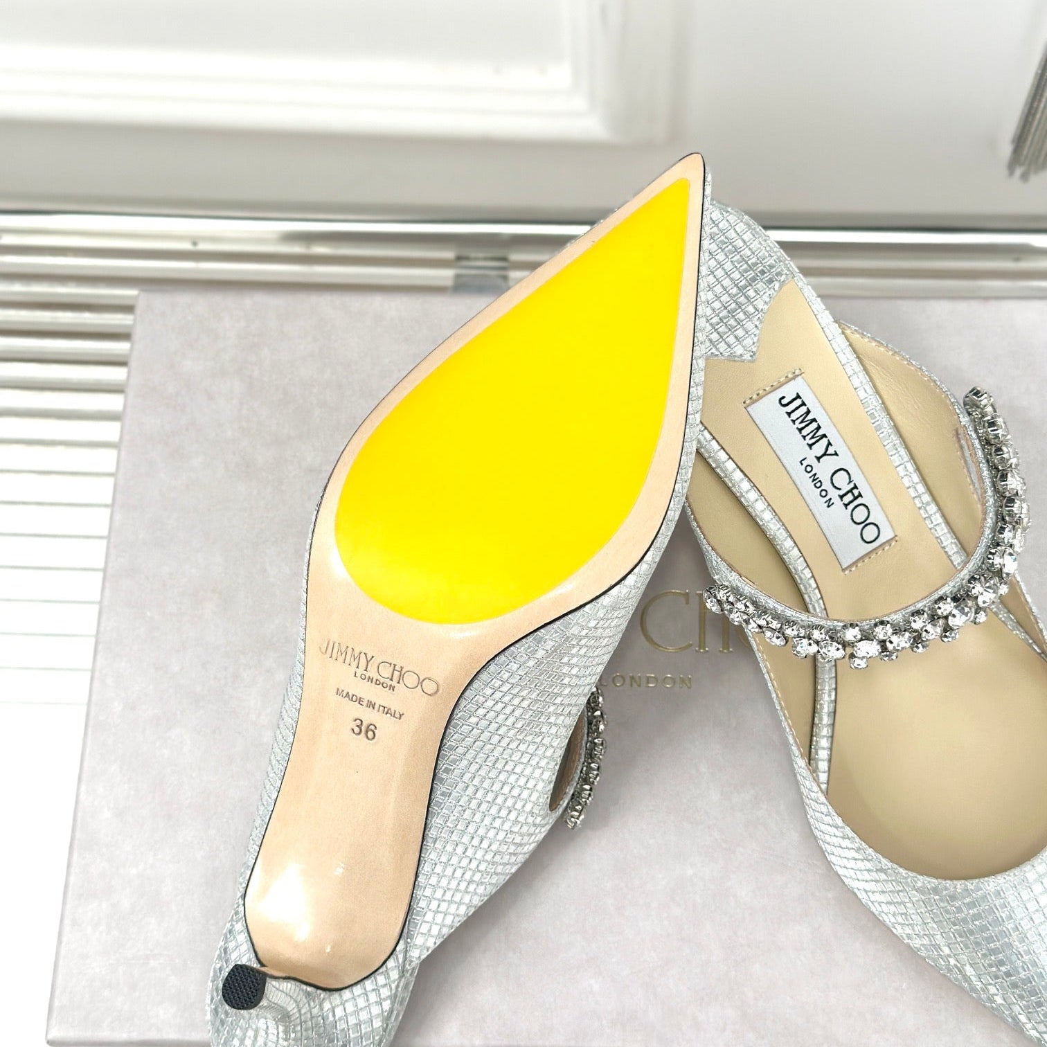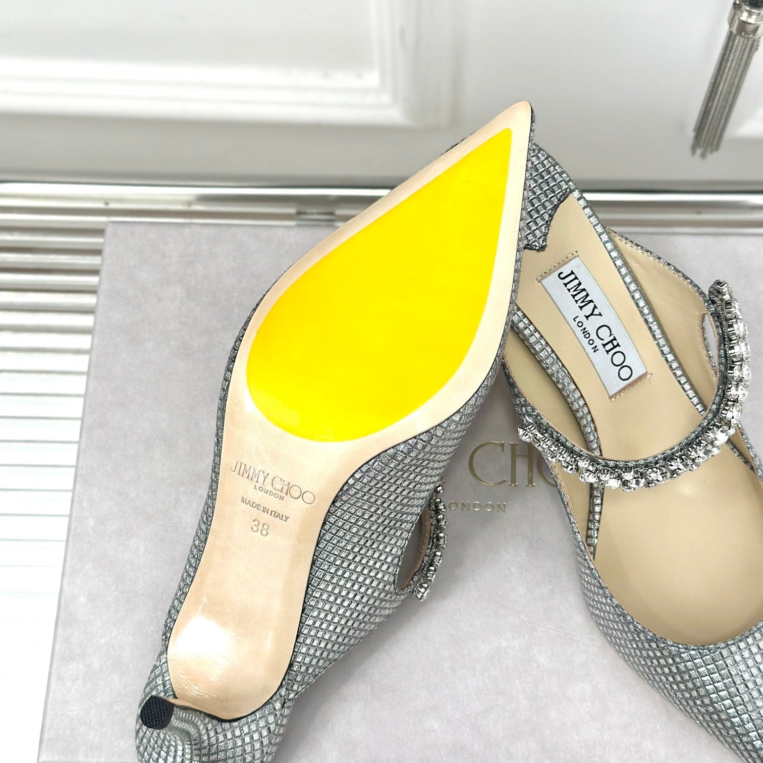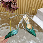 Jimmy Saeda 100mm In Dark Green Satin Pumps With Crystal Embellishment 641080