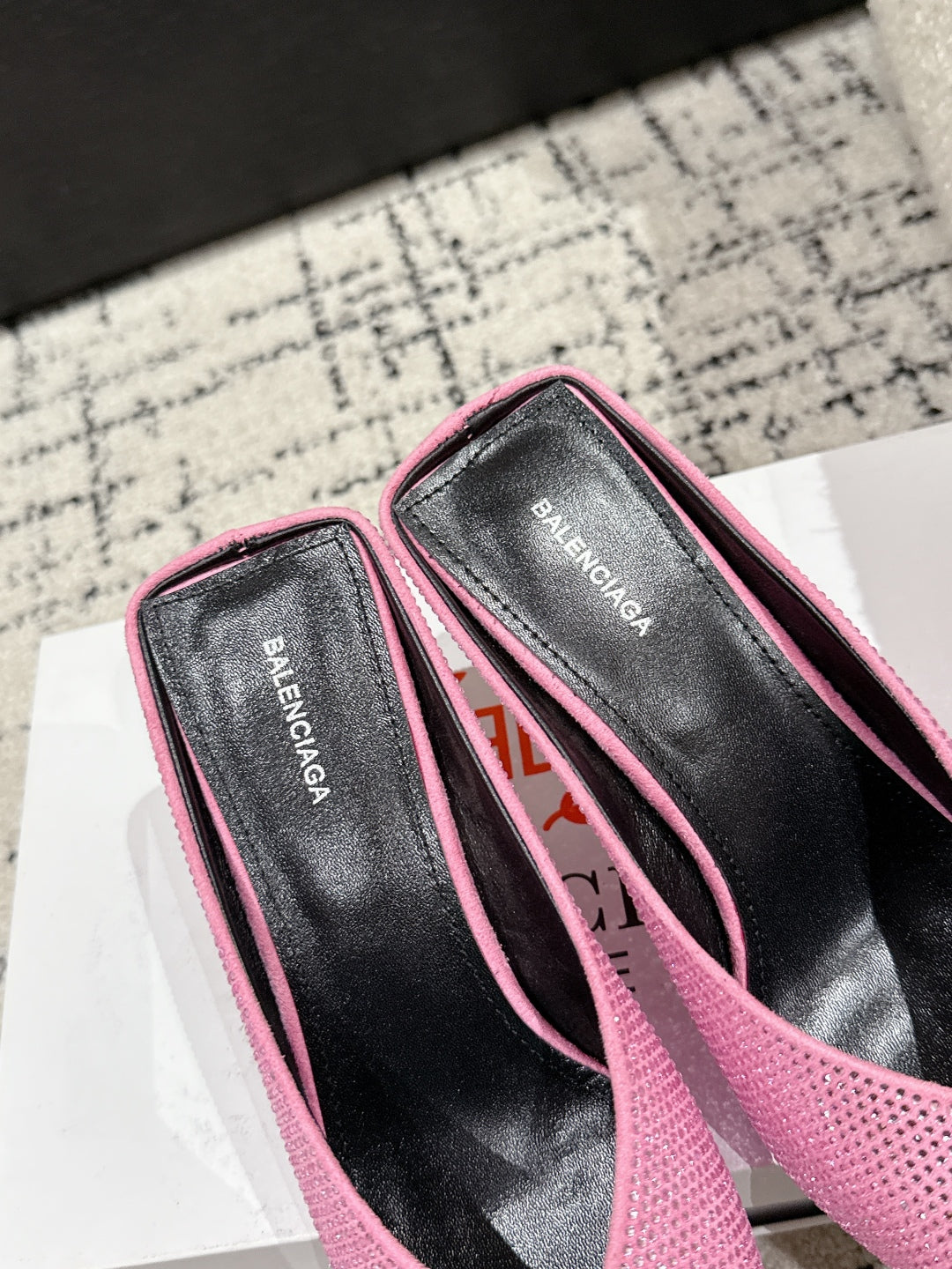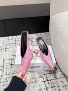 KNIFE 65MM HIGH MULE IN SHOCKING PINK SUEDE ATTACHED FULL CRYSTALS