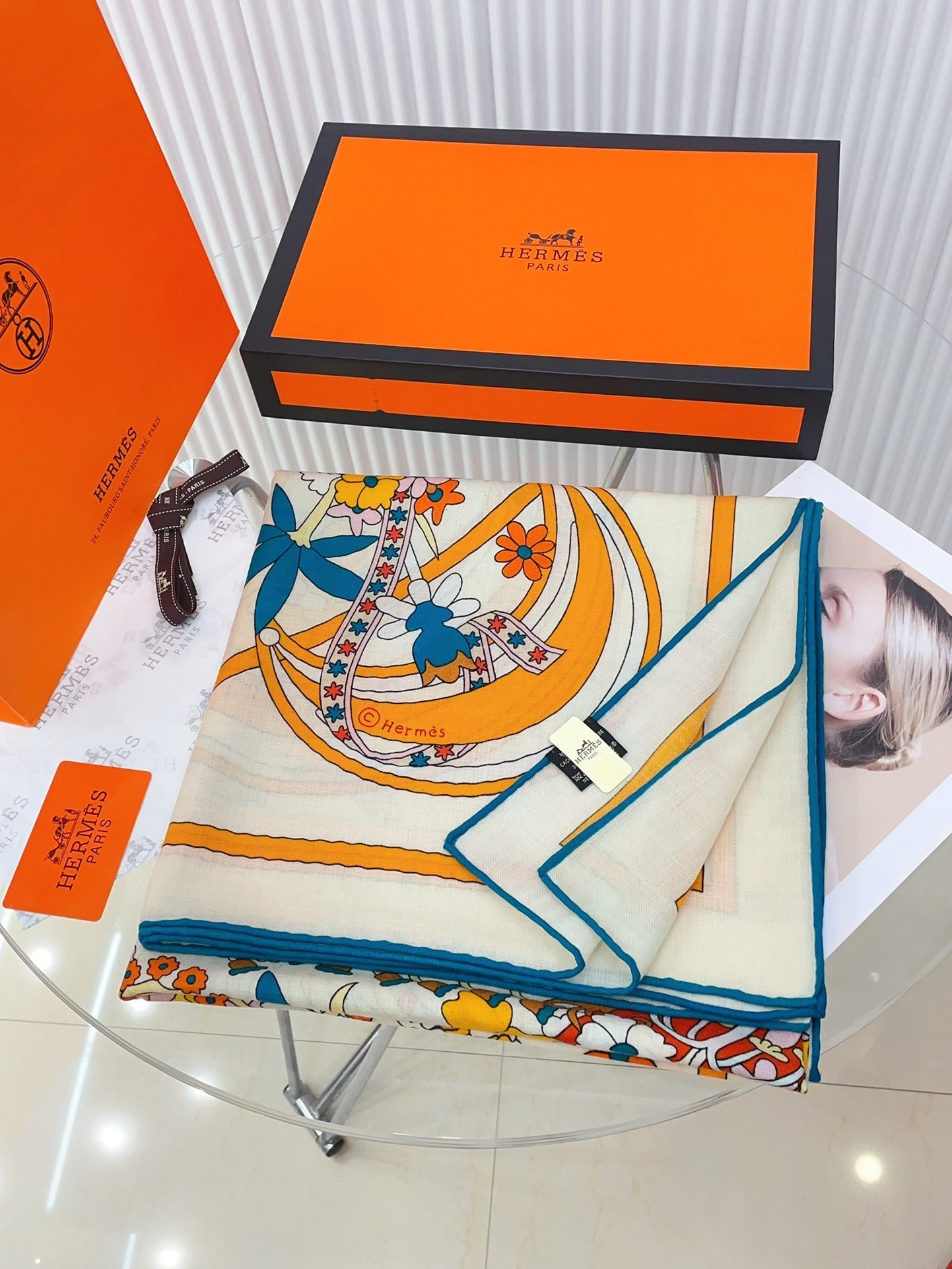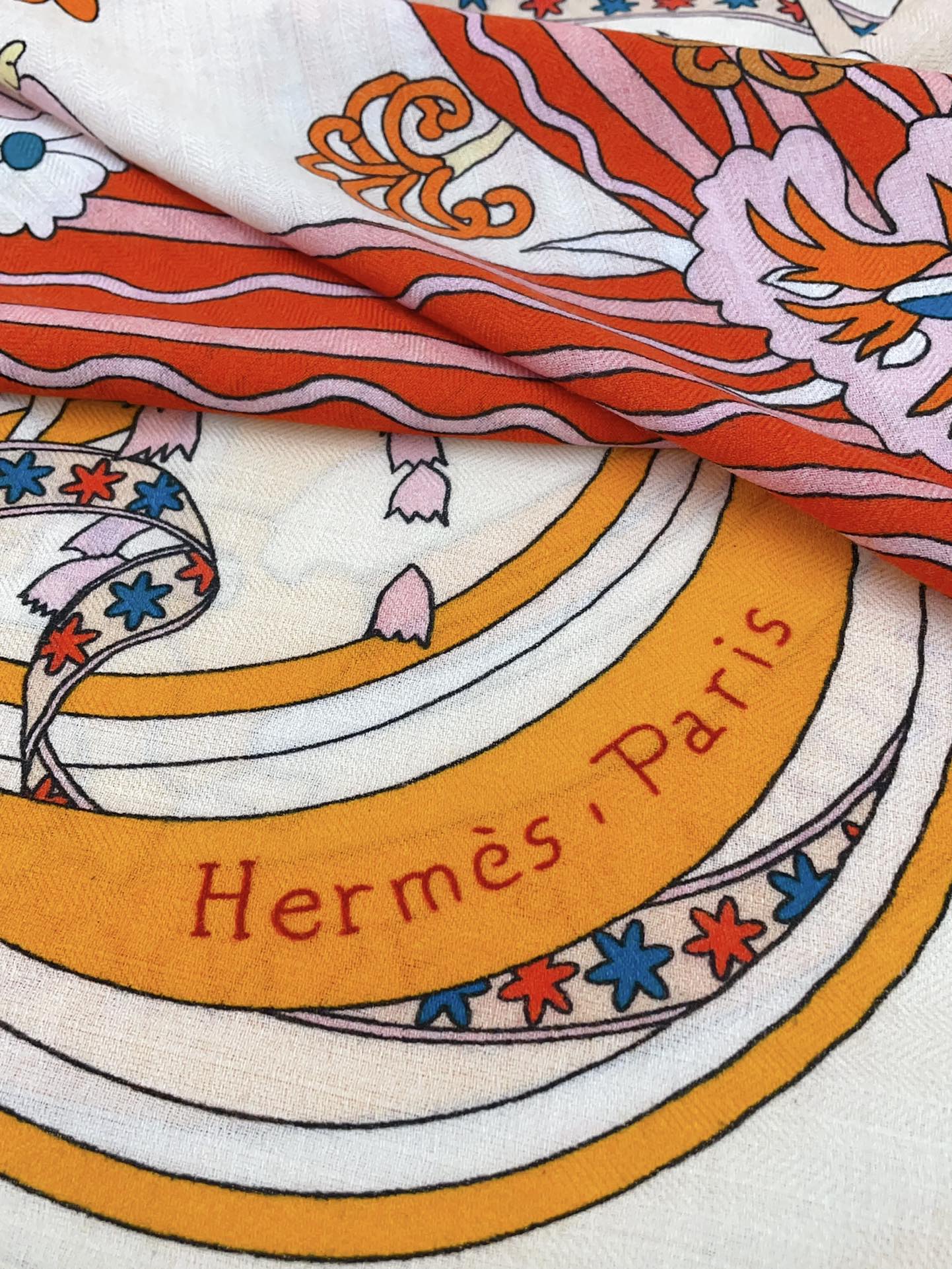 La Danse Du Printemps Scarf 140 In Yellow Colorful Cashmere And Silk 344366