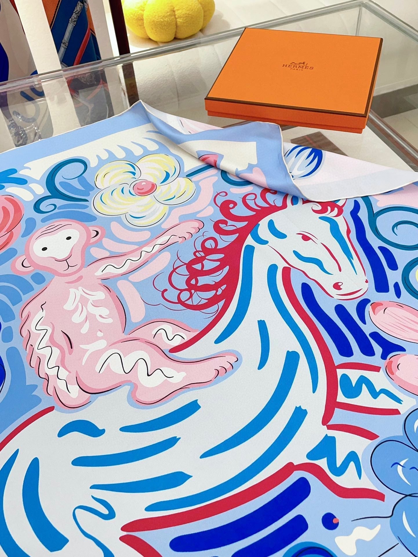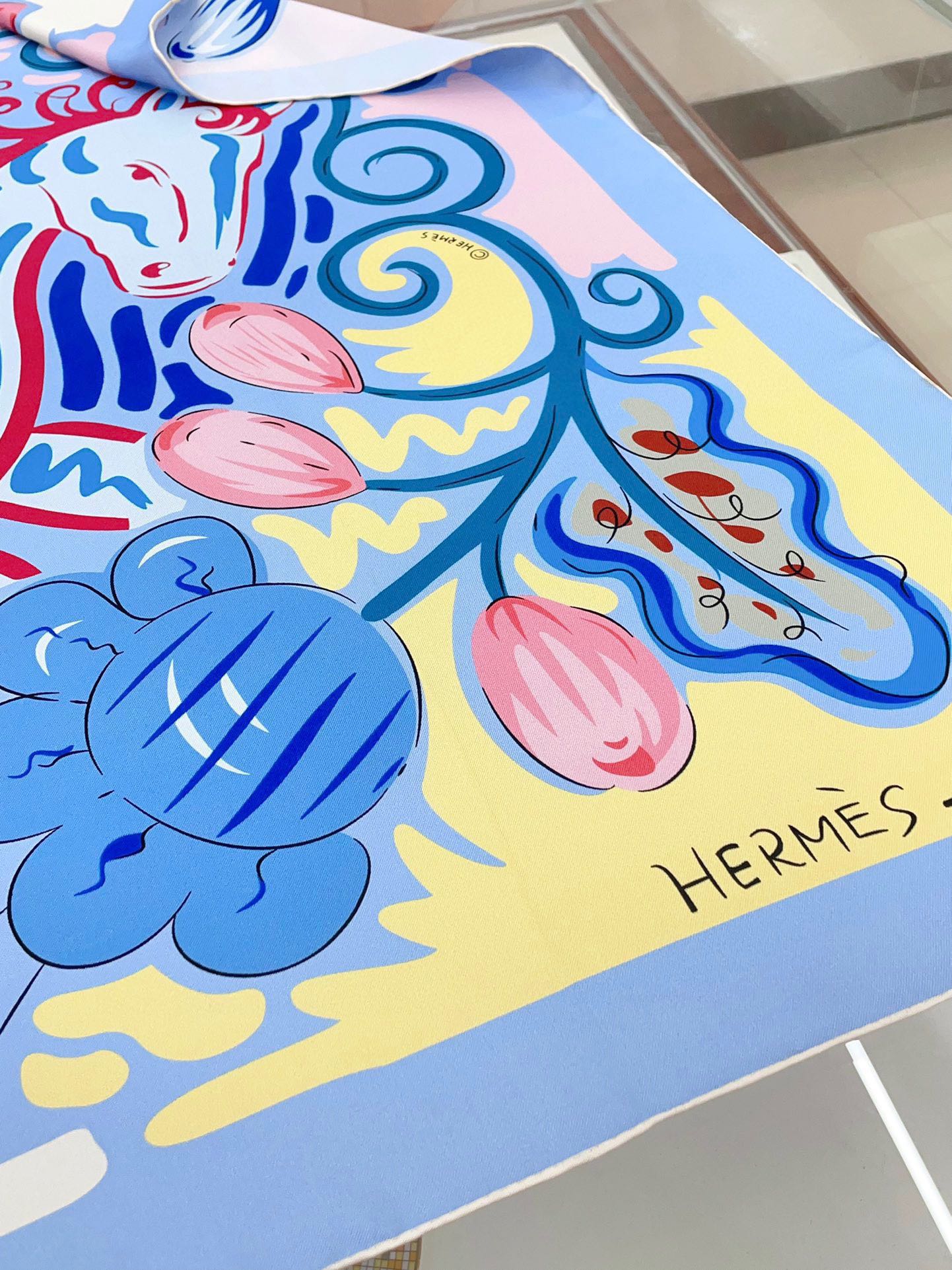 Le Cheval De Kazumi Scarf 90 CM Blue Colorful Silk Twill 347387