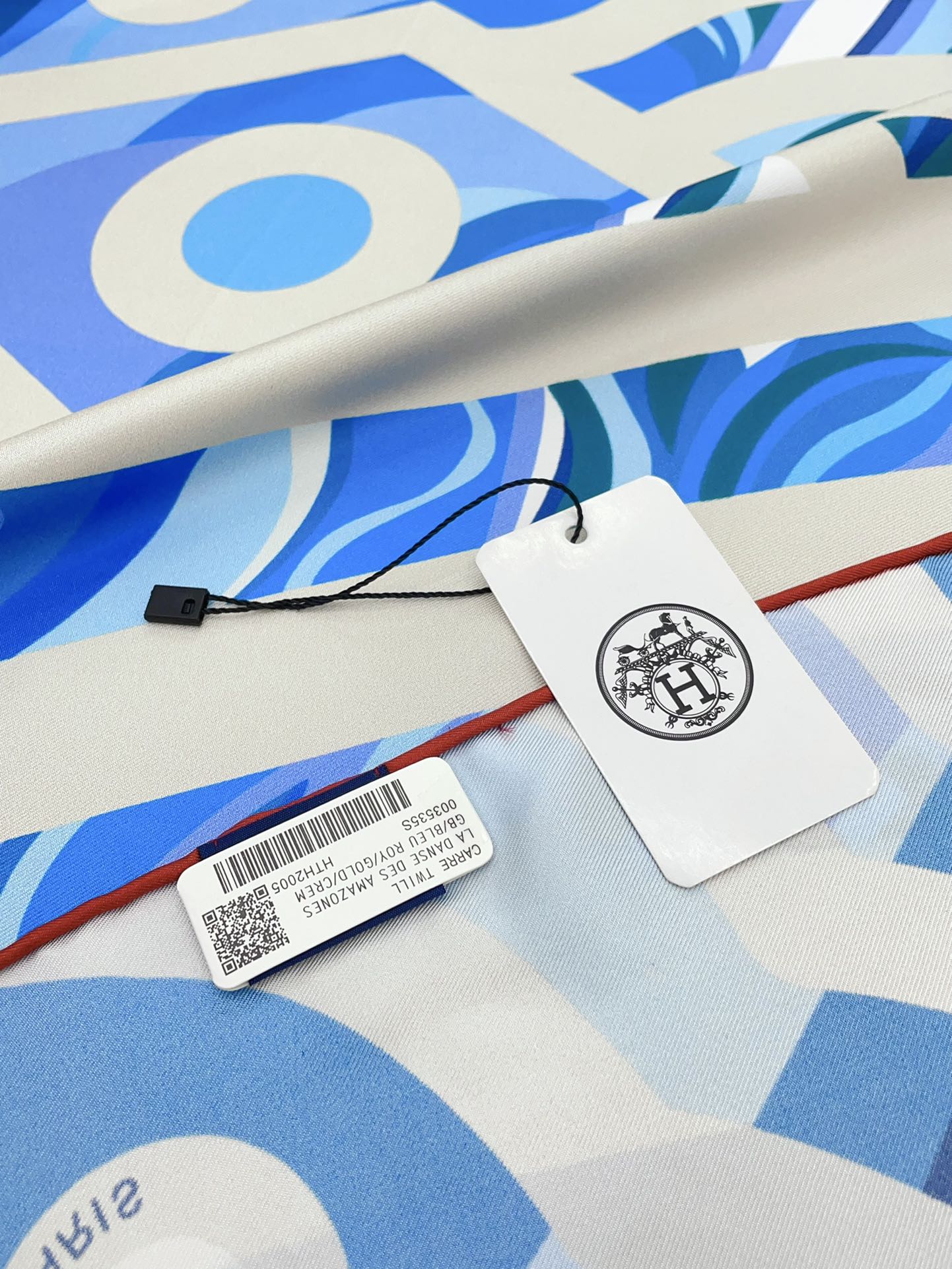 Le Reve De Julia Scarf 90 CM In Blue Colorful Silk Twill 198578