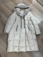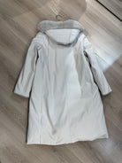LP 25 Hooded Long Goose Down Light Gray Jacket with Fur Trim 124985