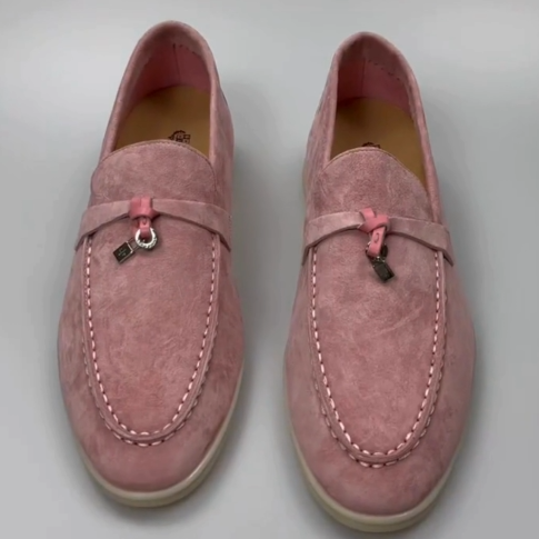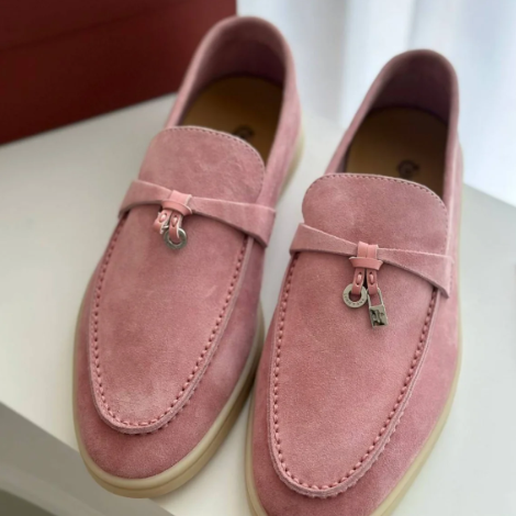 LP Summer Charms Walk Loafers In Light Brown Grey Mix Green Khaki Suede With Rabbit Fur Lining 985646