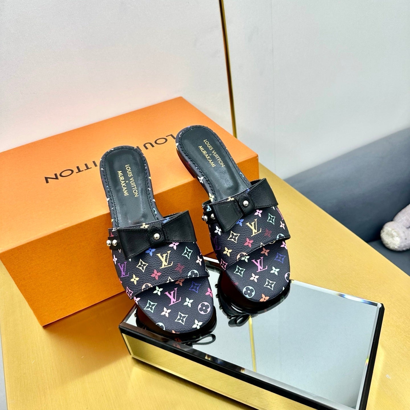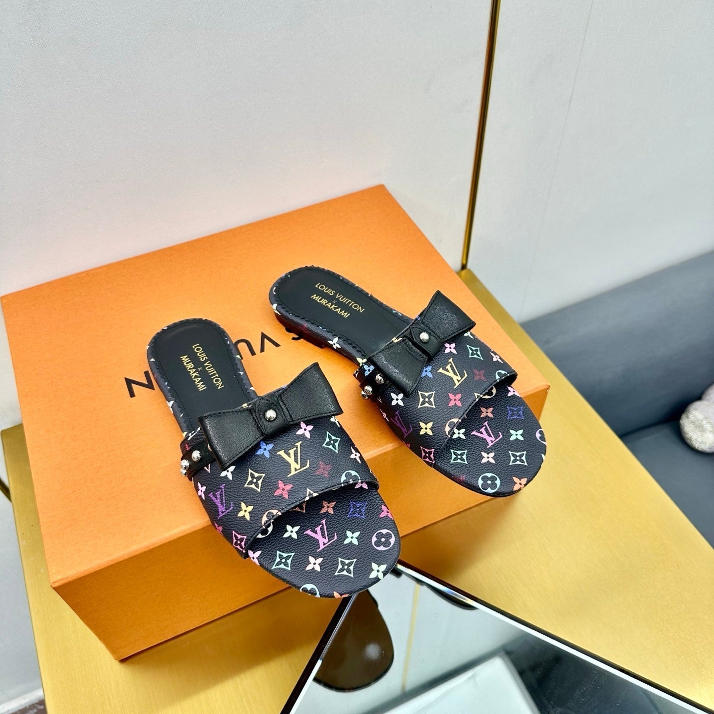 LV 25C LV x TM 6AM Flat Mule Black Bow Black with Monogram Multicolore Leather 219950