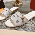 lv sandal isola flat mule cream monogram calfskin