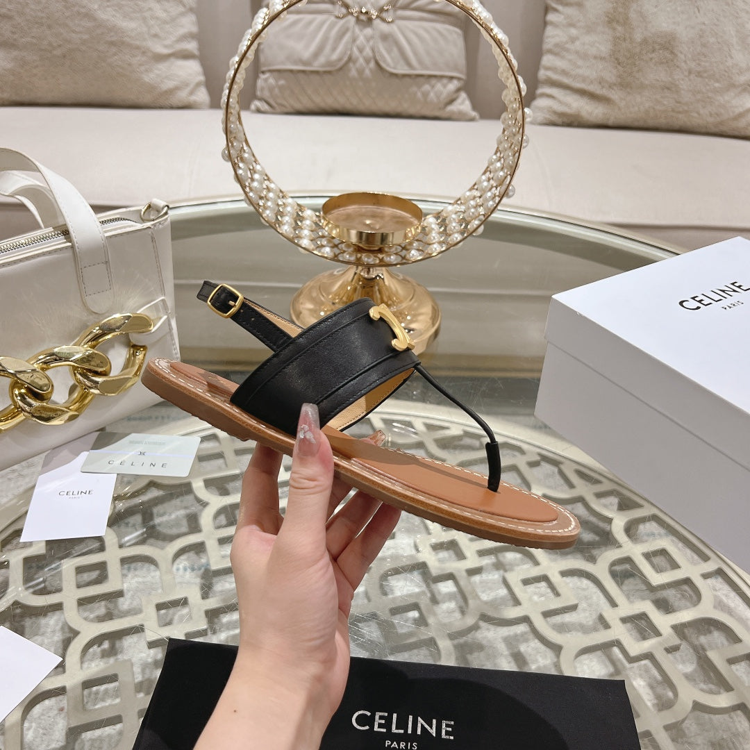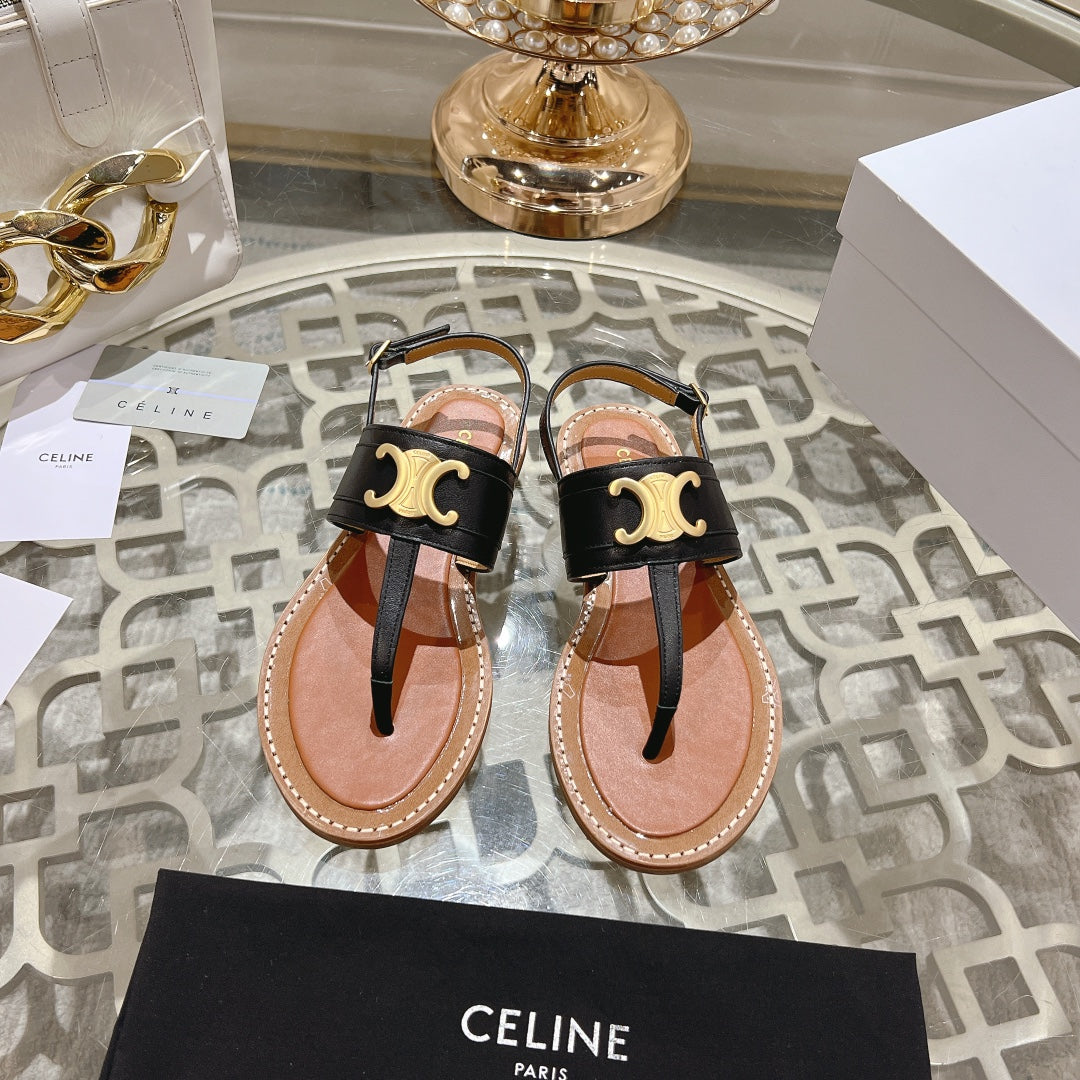 LYMPIA TRIOMPHE THONG IN CALFSKIN BLACK/BROWN