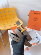 MINI H BELT BUCKLE & REVERSIBLE CAMEL BROWN LEATHER STRAP 24 MM GOLD HARDWARE