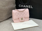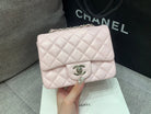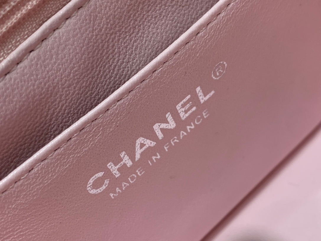 MINI SQUARE FLAP BAG 17CM PINK LAMBSKIN SILVER HARDWARE