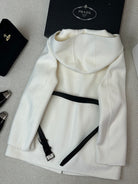 Prada 25 Mid-length Hooded Coat White Black Wool 637352