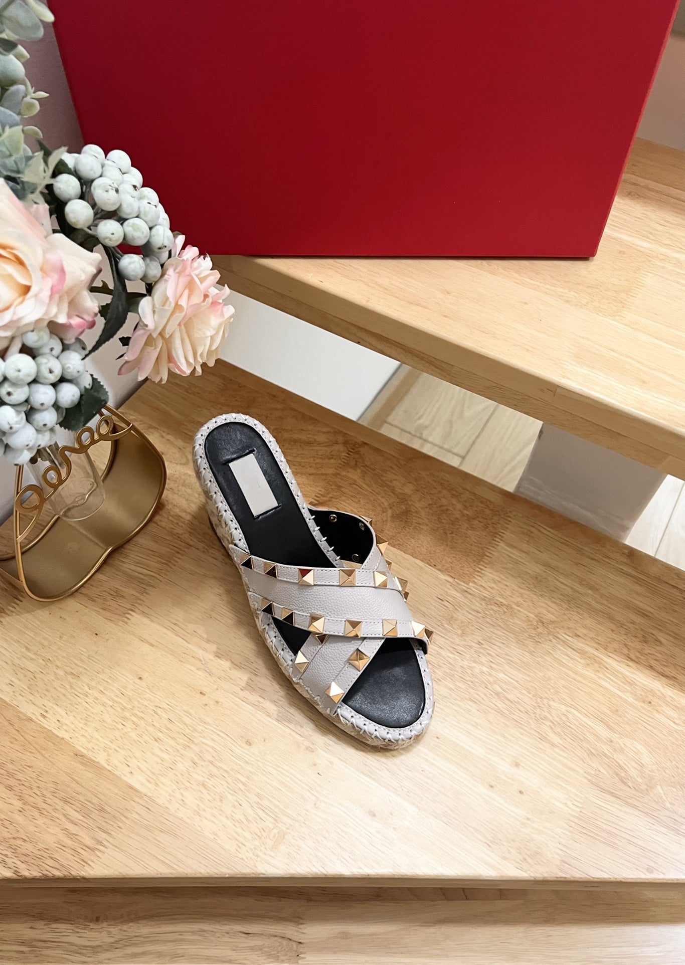Rockstud Crisscross Espadrilles 80mm Sandal Wedges Ivory