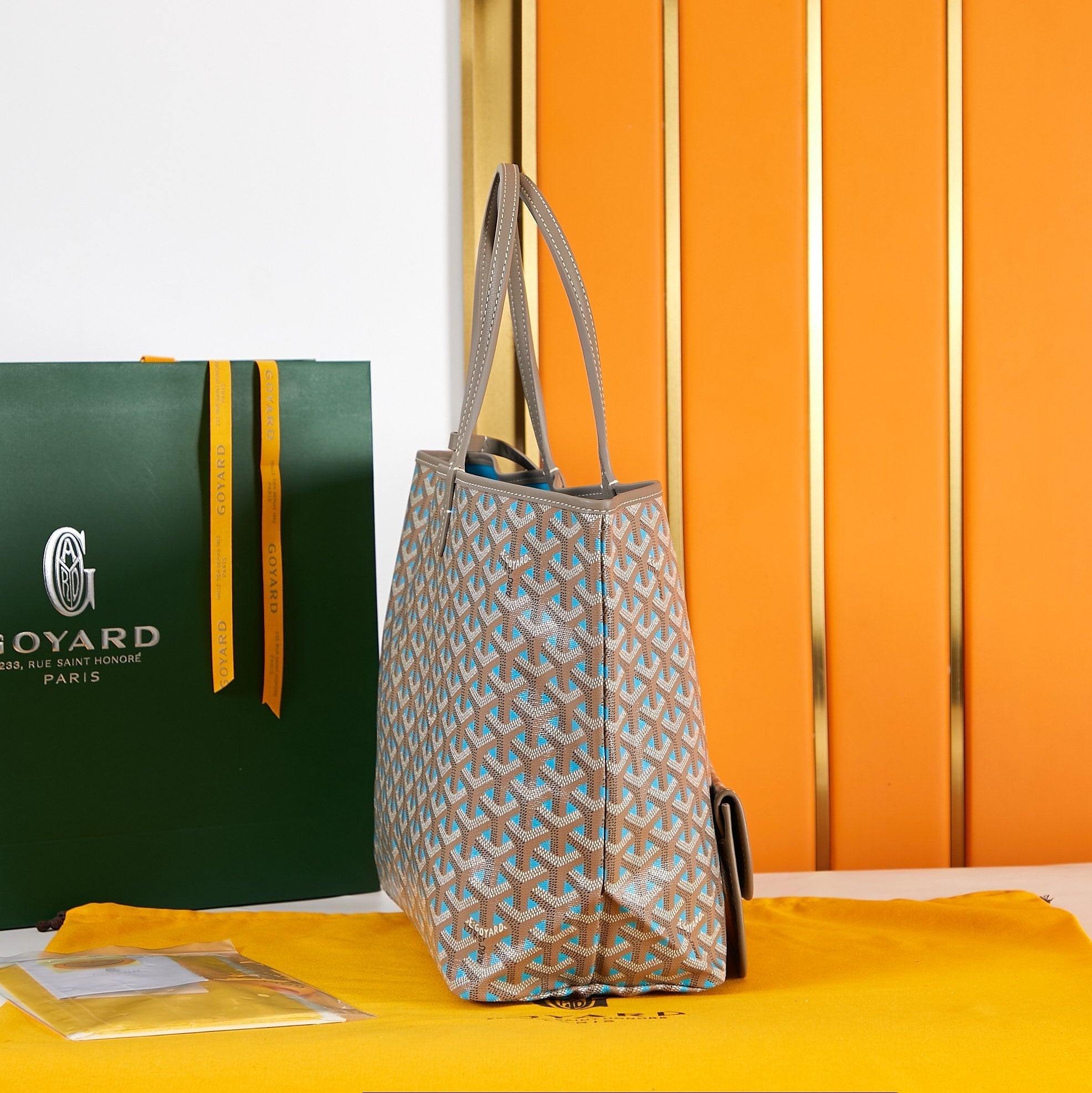 saint louis pm 34cm brown sky blue canvas chevroches calfskin