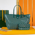 saint louis pm 34cm green canvas chevroches calfskin