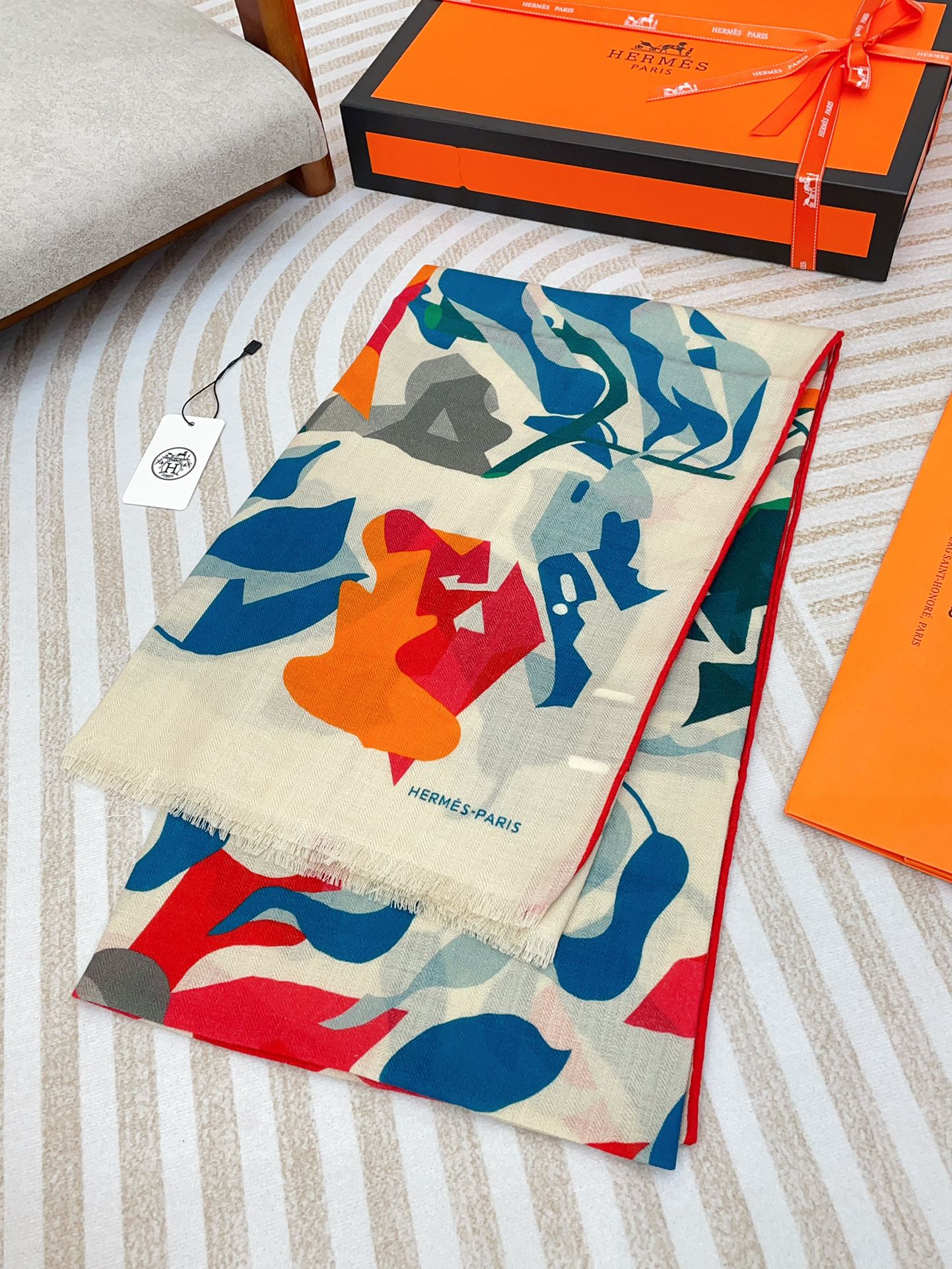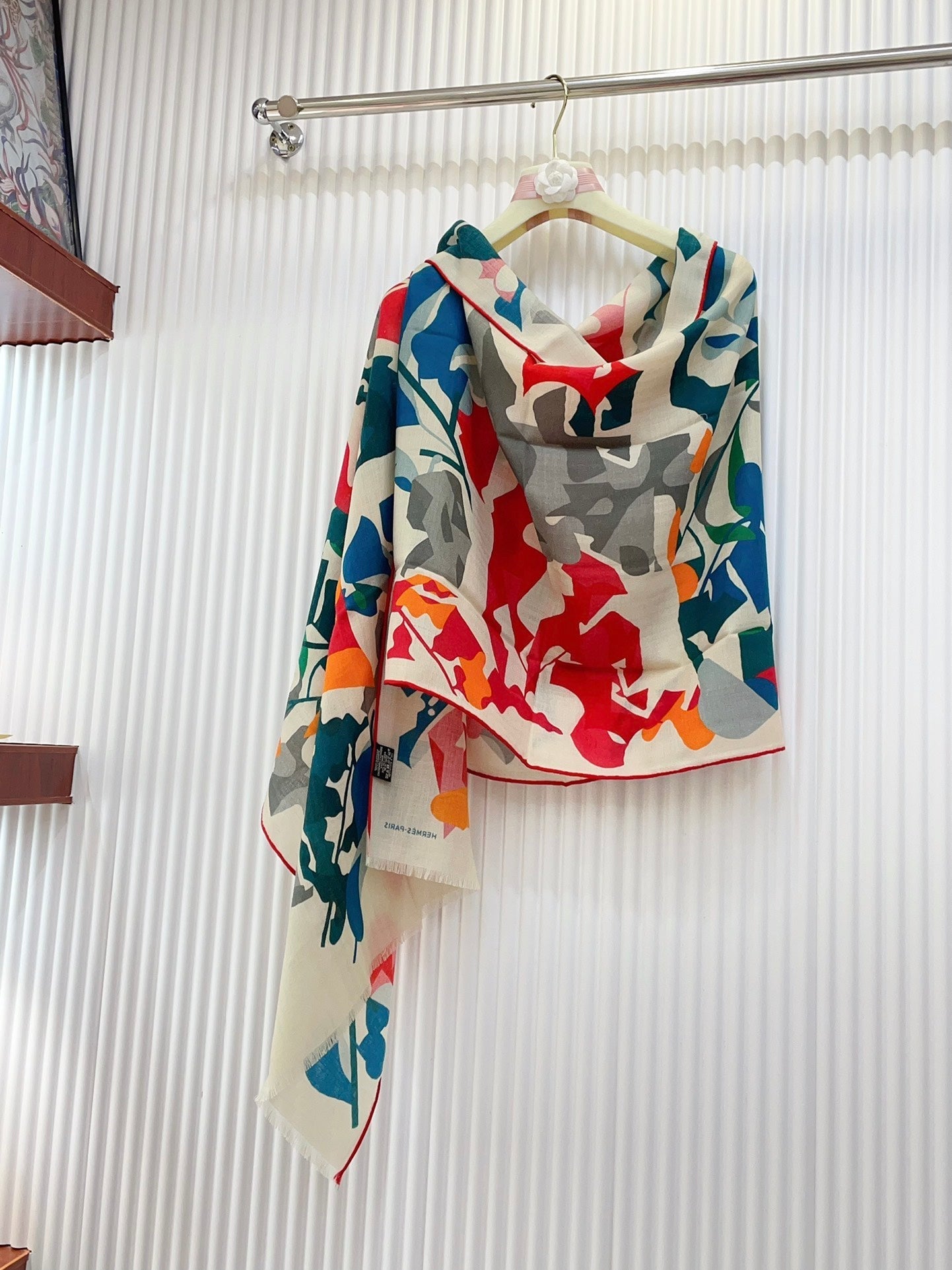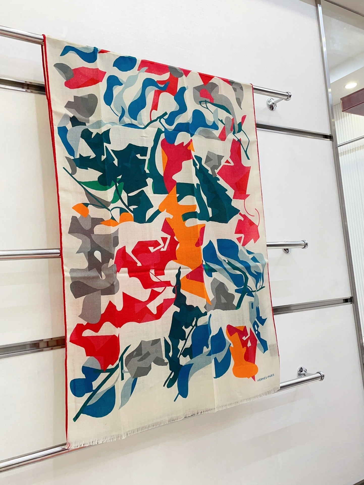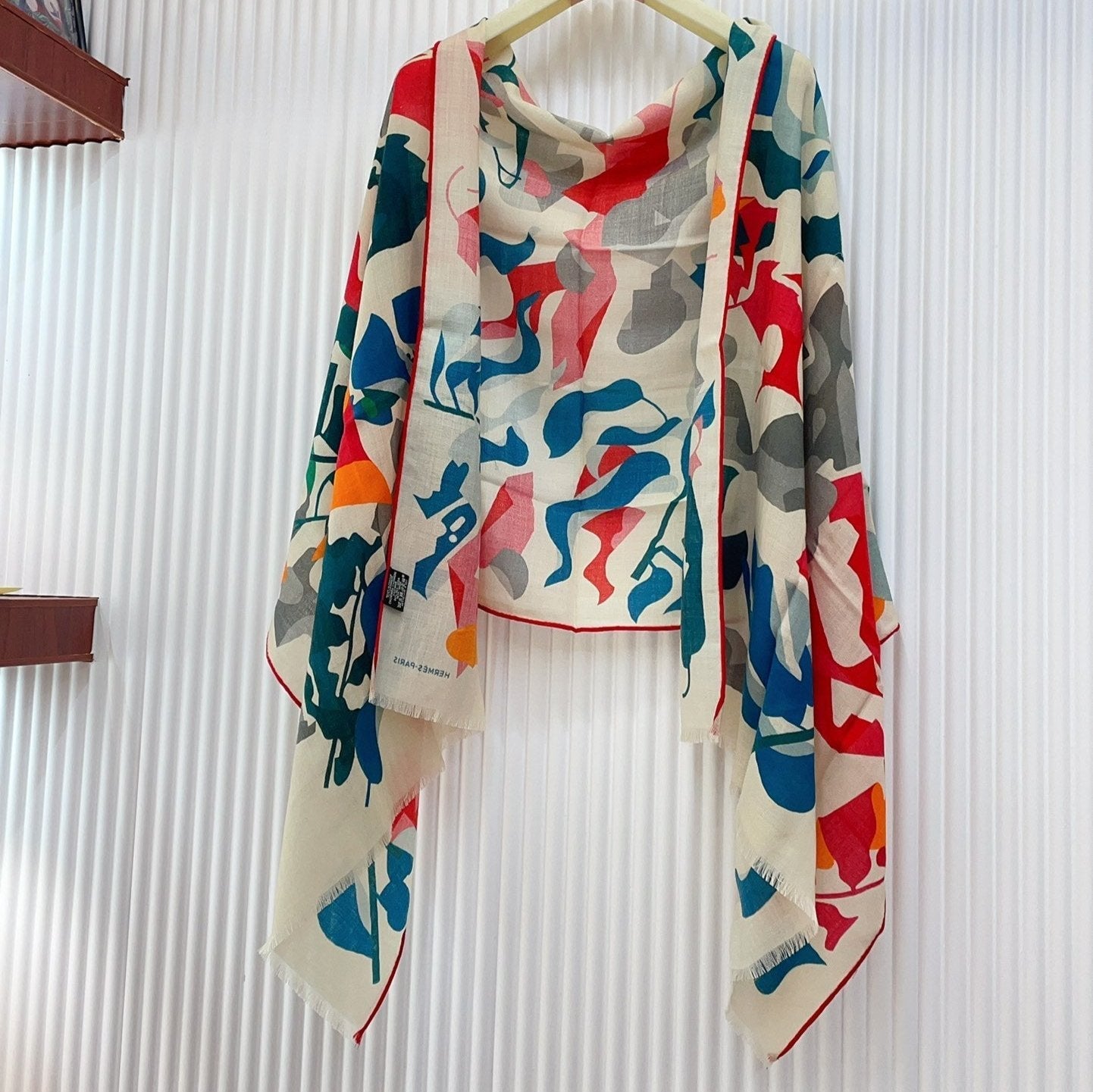 Scarf 180 CM Red Colorful Mashmere And Silk 403885