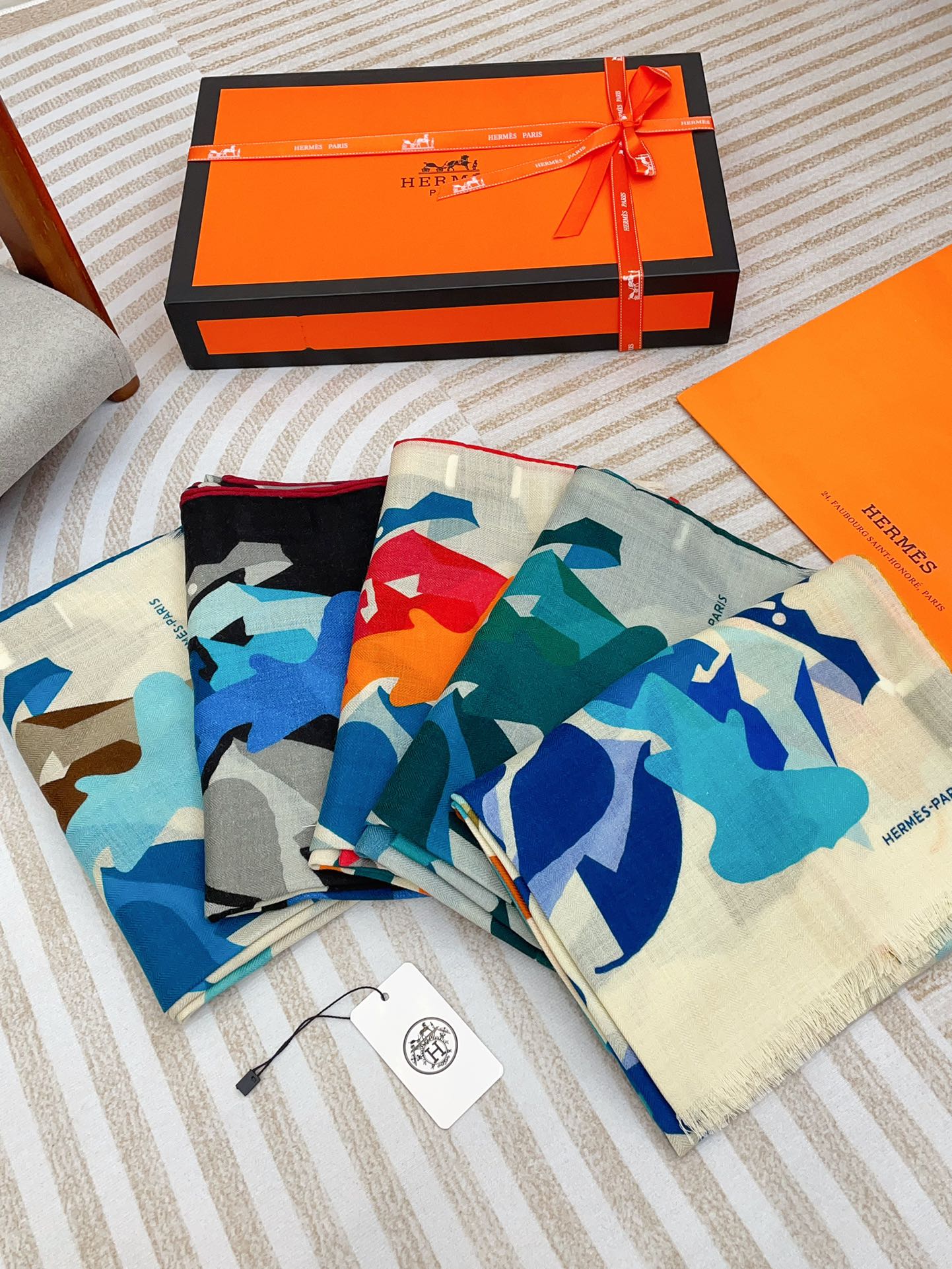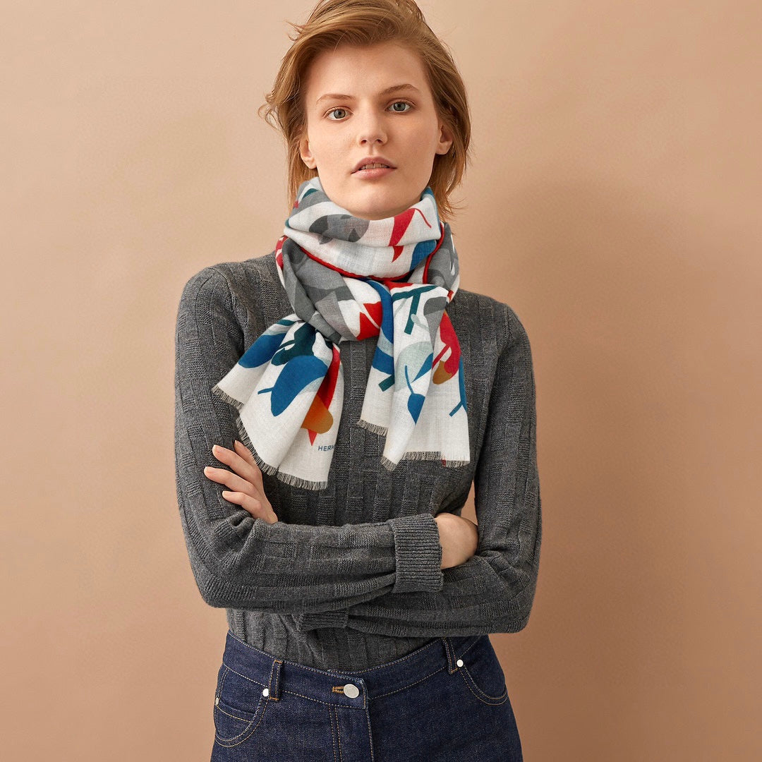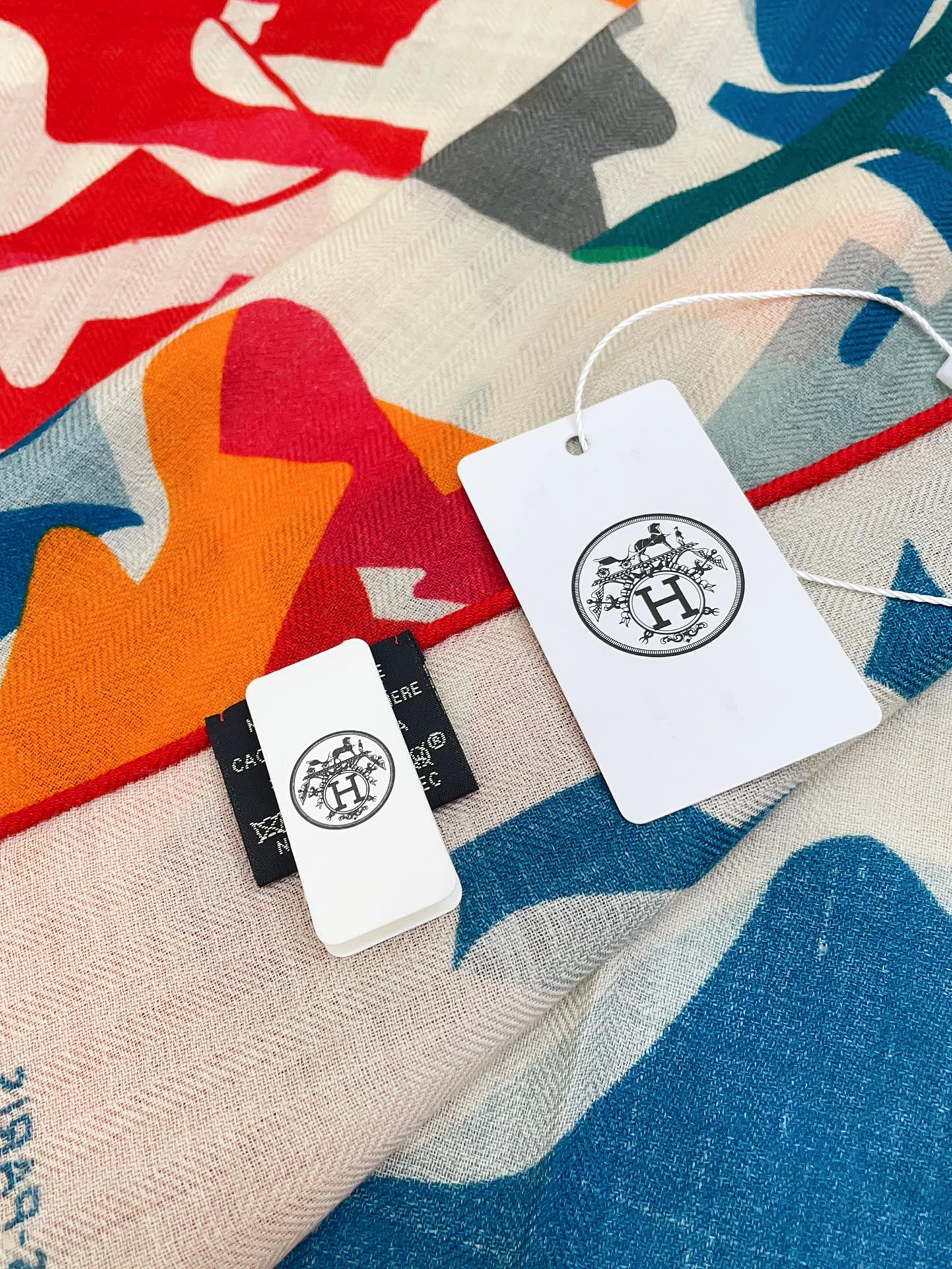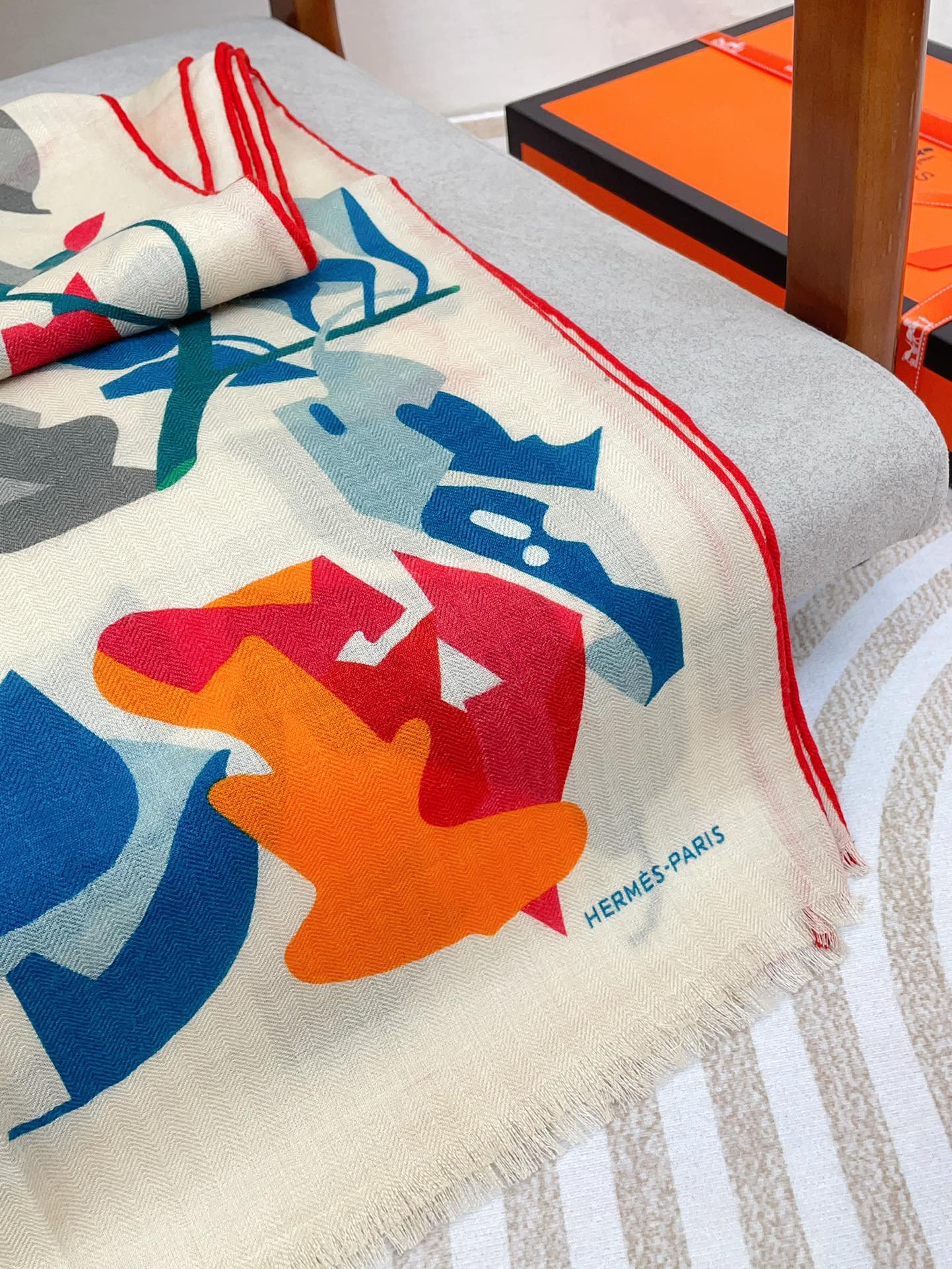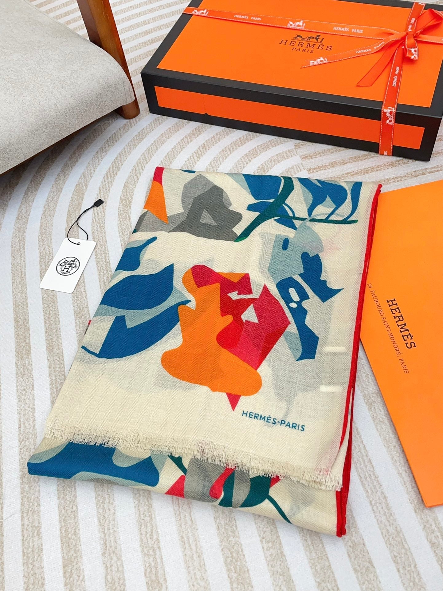 Scarf 180 CM Red Colorful Mashmere And Silk 403885