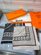 SCARF 140 CM IN WHITE MIX BLACK CASHMERE AND SILK 379766