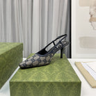slingback pump 85 beige and blue canvas