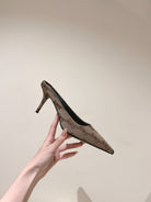 POINTED HIGH MULES IN BEIGE MONOGRAM JACQUARD FABRIC
