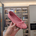 RHINESTONE BALLET FLATS WITH BOW IN SEA PINK WAX-OIL SHEEPSKIN