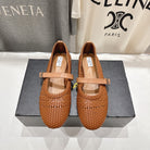 ALAIA MARY JANE FLATS brown woven calfskin pattent
