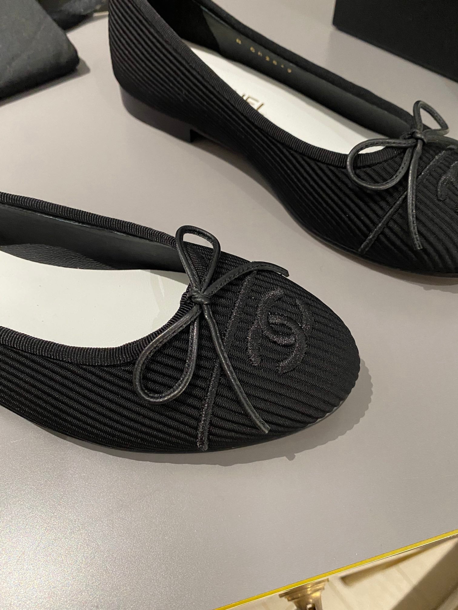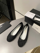 ballet flat black embroidered fabric