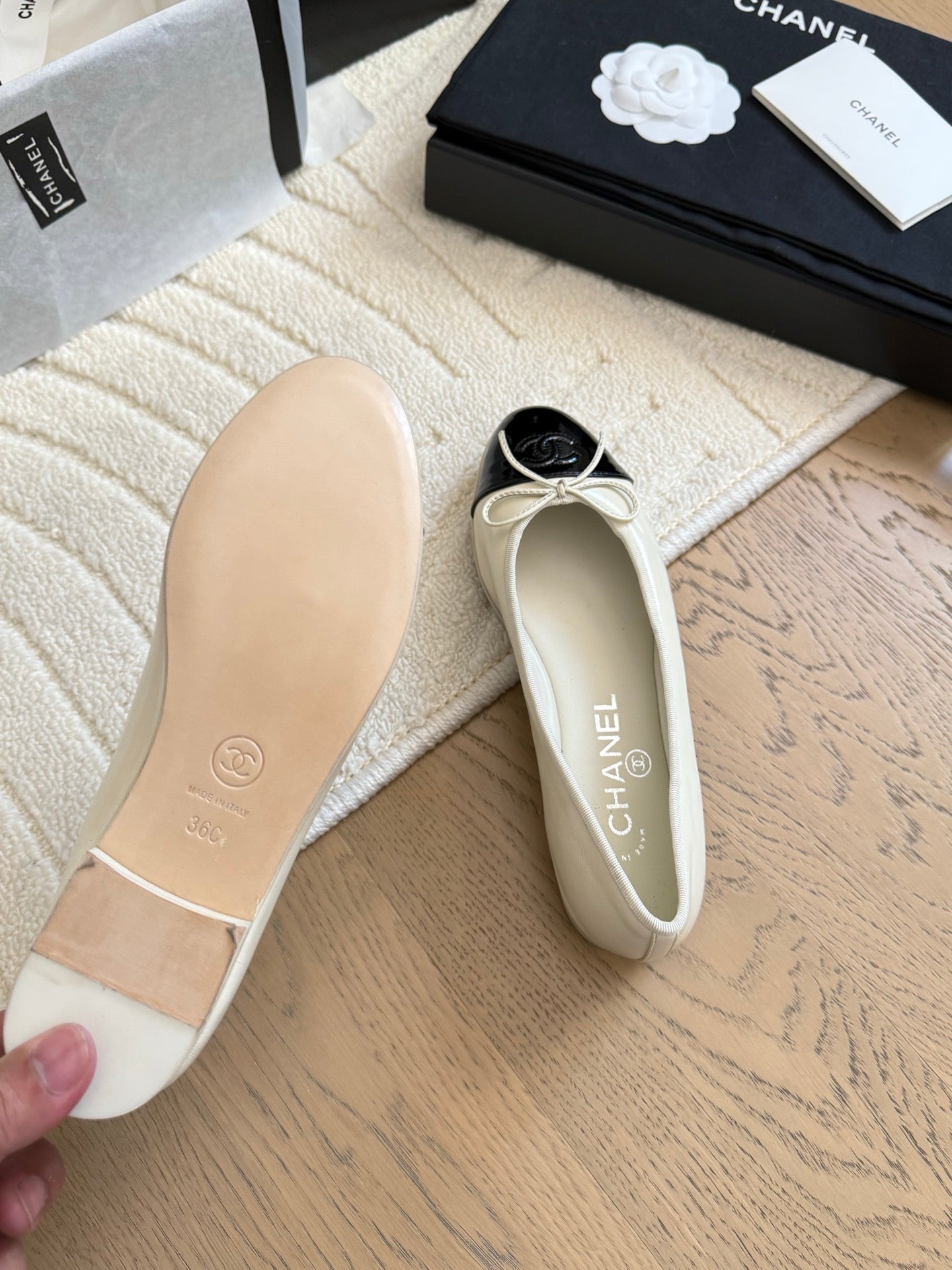 CC 25C Ballet Flat Two-tone Patent Calfskin