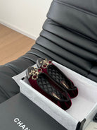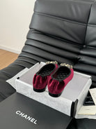 CC Ballet Flats In Burgundy Velvet Fabric 143526