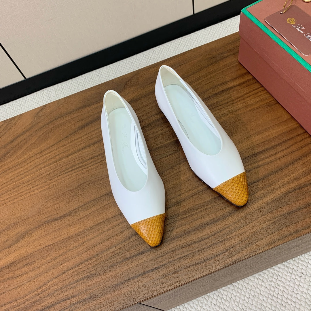 LP Rebecca Ballet Flats In White Mix Yellow Brown Cowhide 984358
