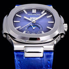 PATEK NAUTILUS MOONPHASE ANNUAL CALENDAR BLUE DIAL LEATHER