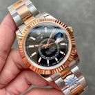 SKY-DWELLER TWO-TONE 42 ROSE GOLD BEZEL BLACK DIAL