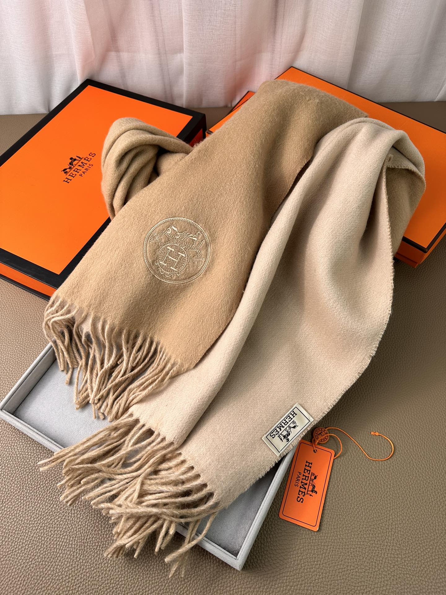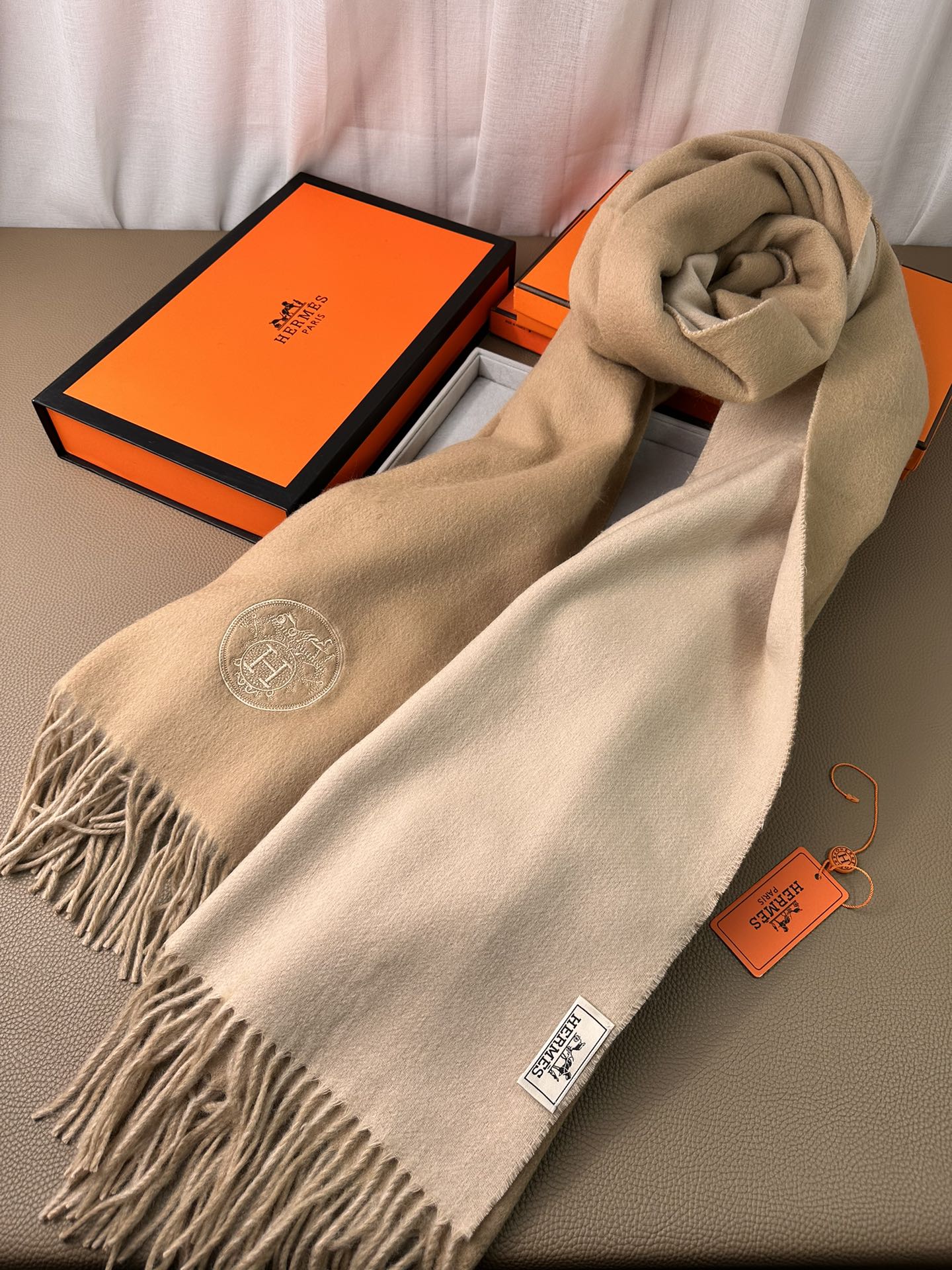 REYKJAVIK GRADIENT SCARF 220 CM IN DOVE GRAY MIX CAMEL BROWN CASHMERE 399737