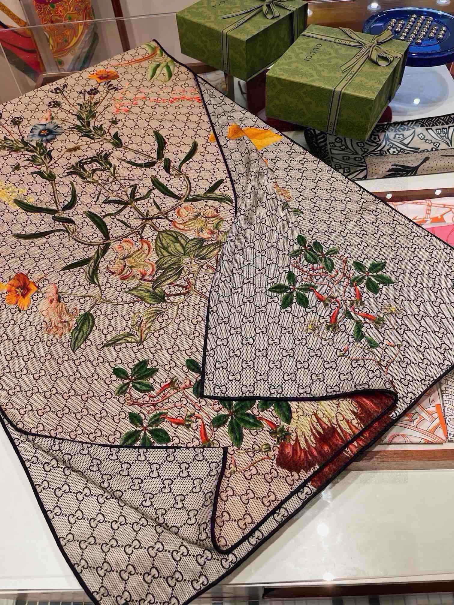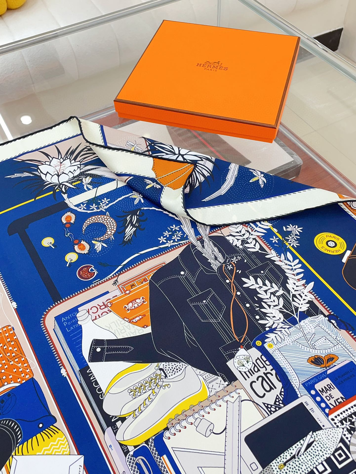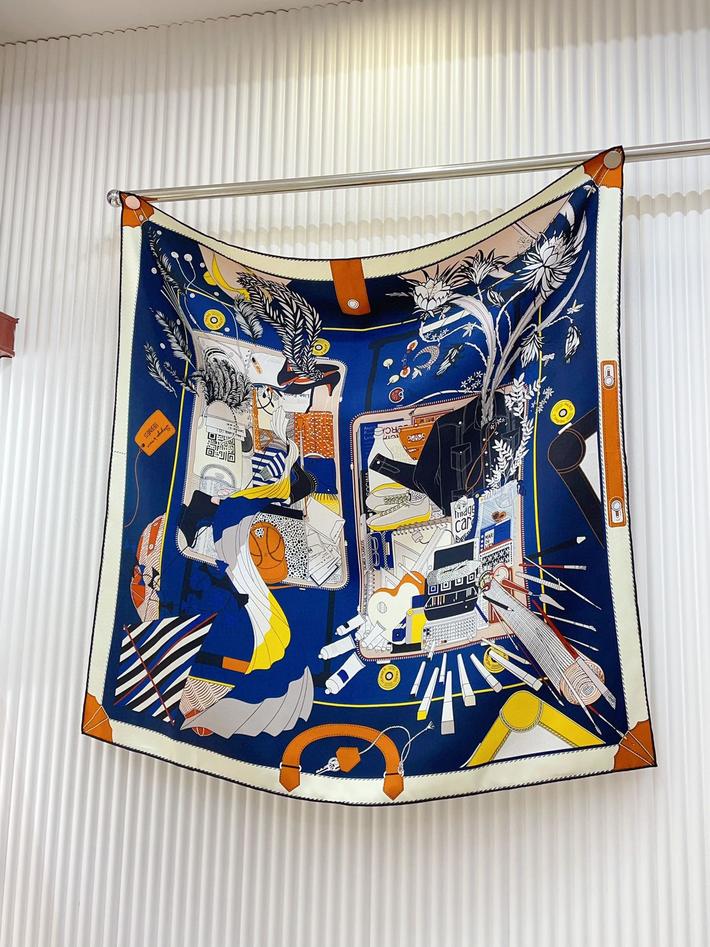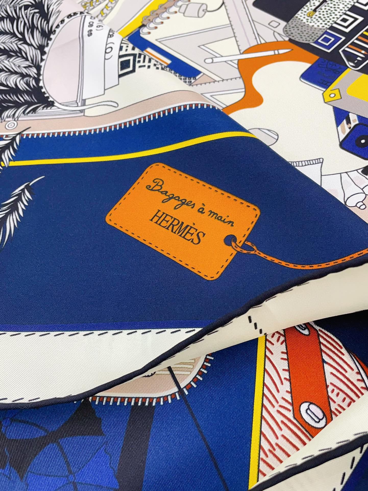 Retourala Nature Hermes Scarf 140 CM White Pink Colorful Silk