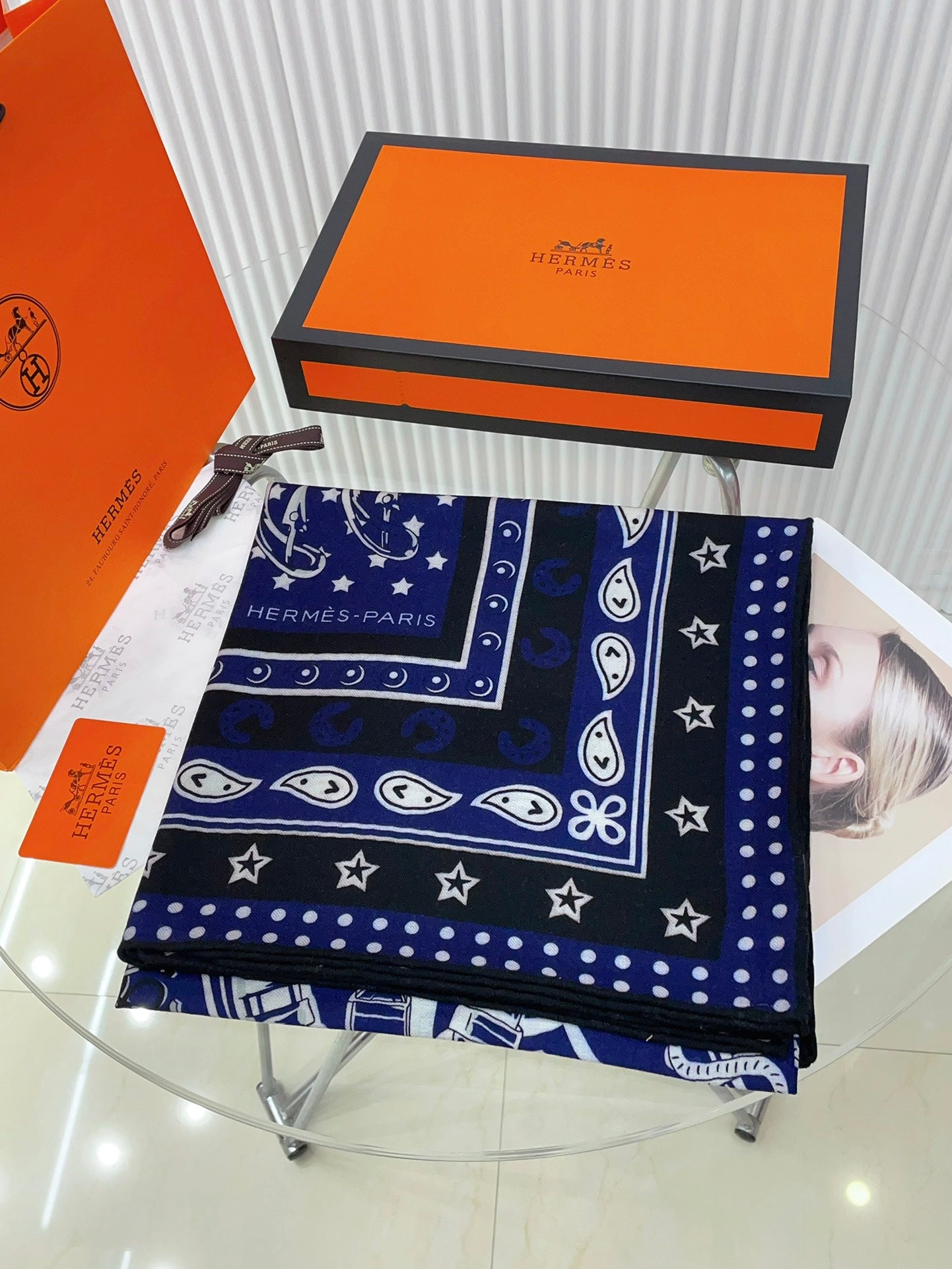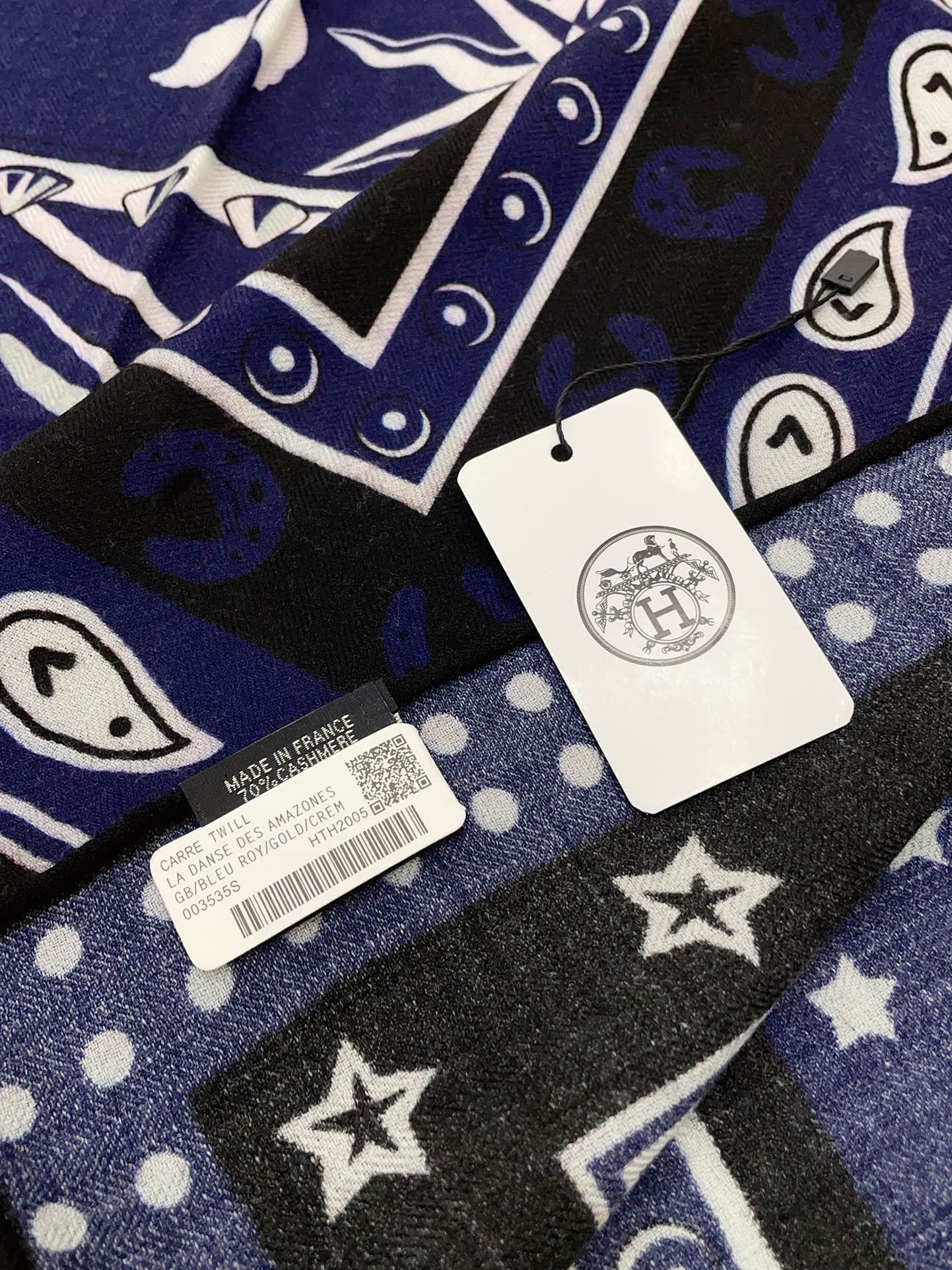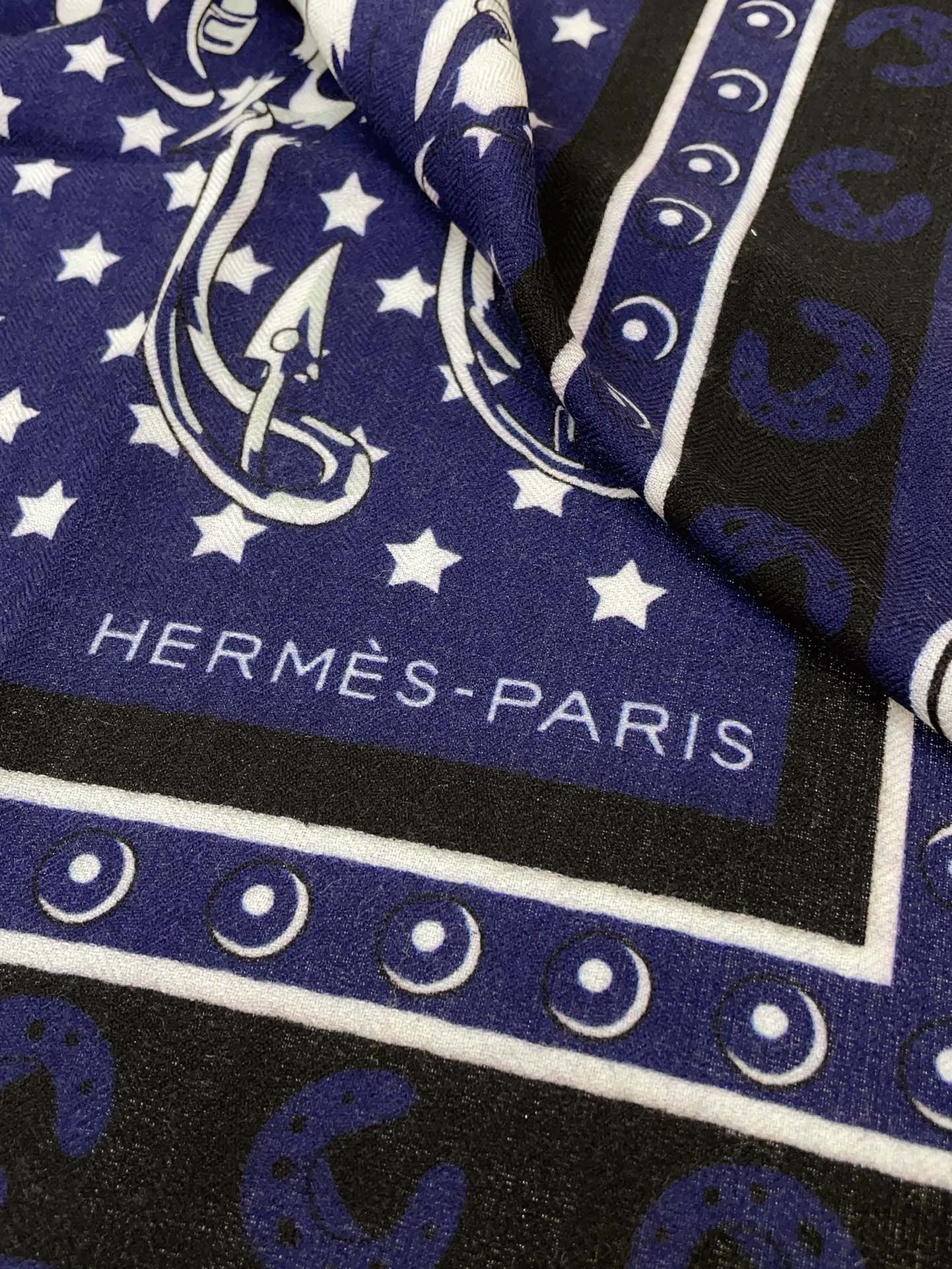 MONOGRAM SHINE SCARF 120 CM IN NAVY BLUE WOOL AND MULBERRY SILK 398196