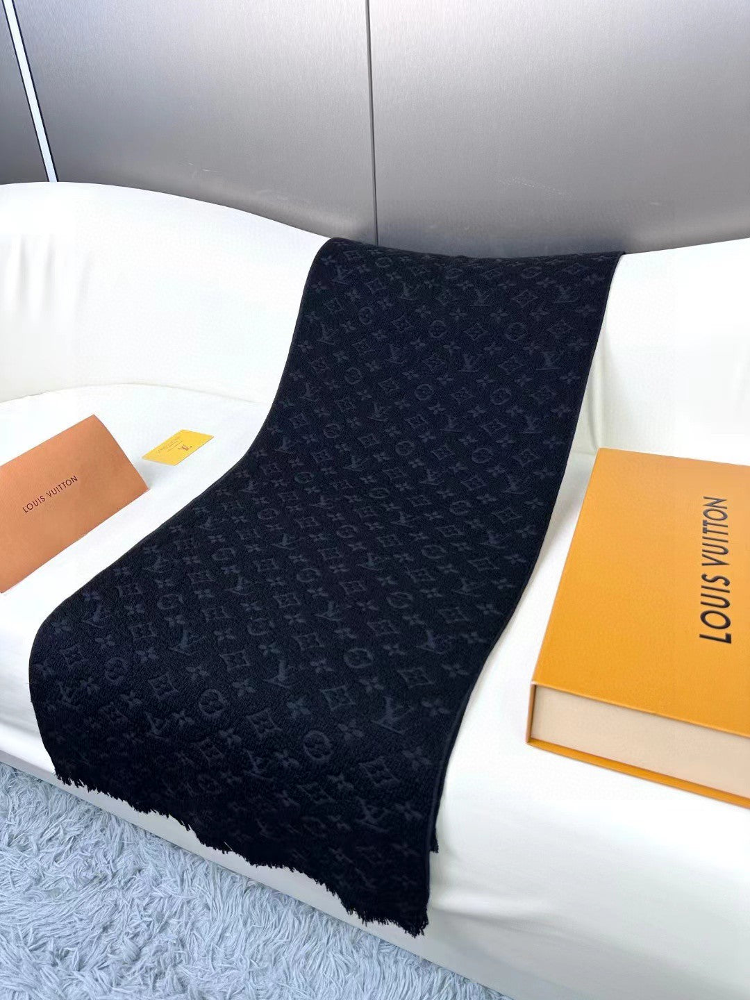 MONOGRAM SCARF 200 CM IN BLACK WOOL AND SILK 391065
