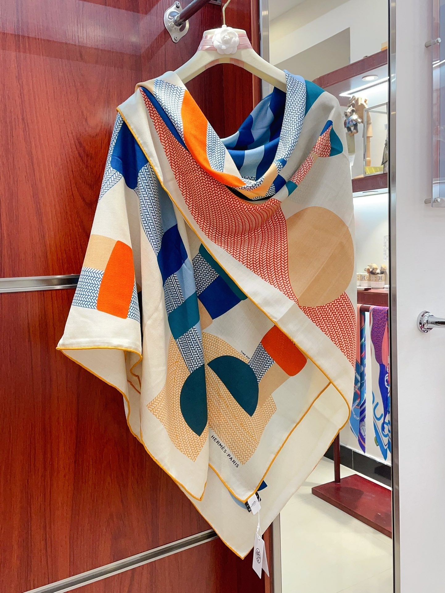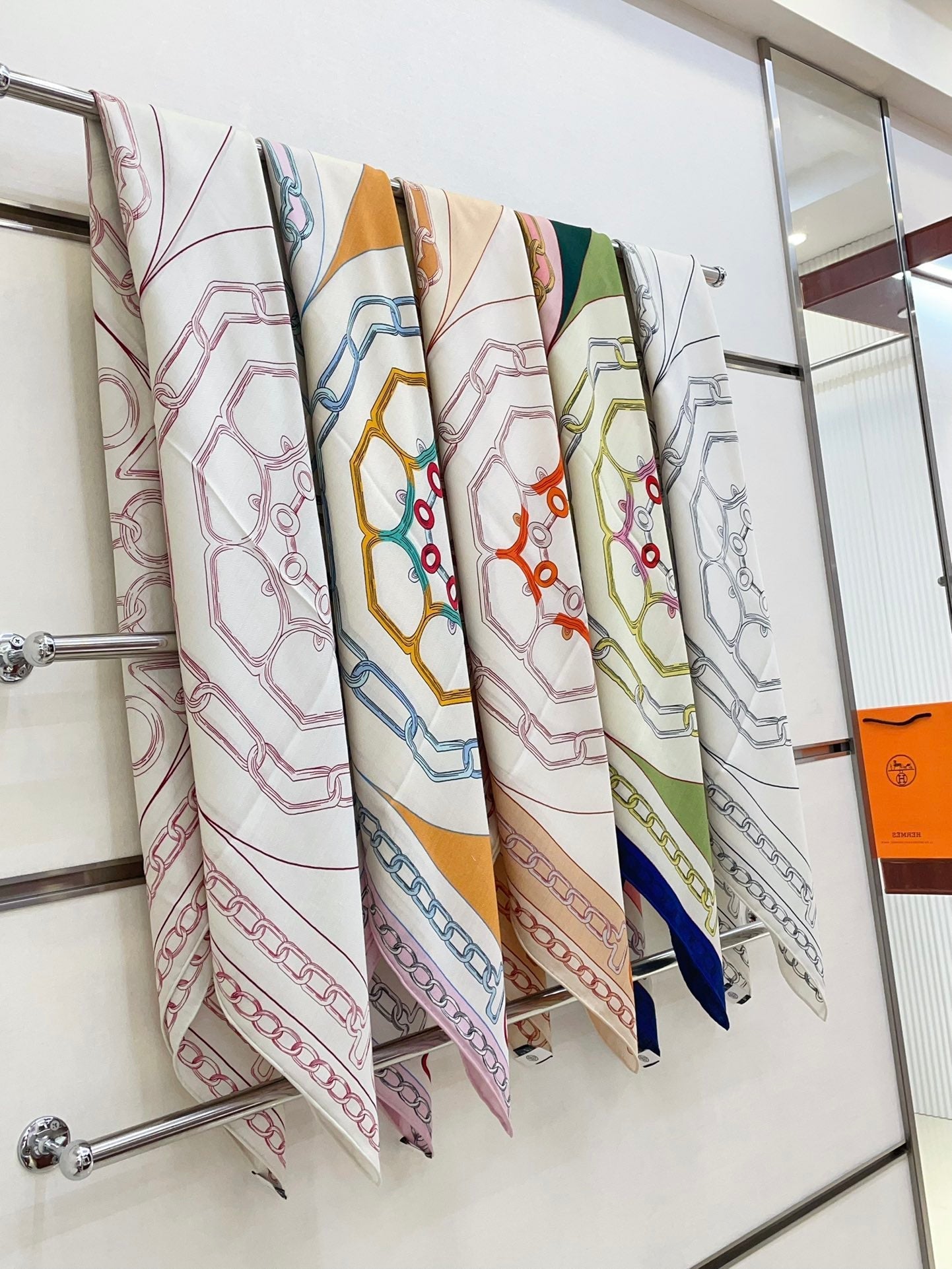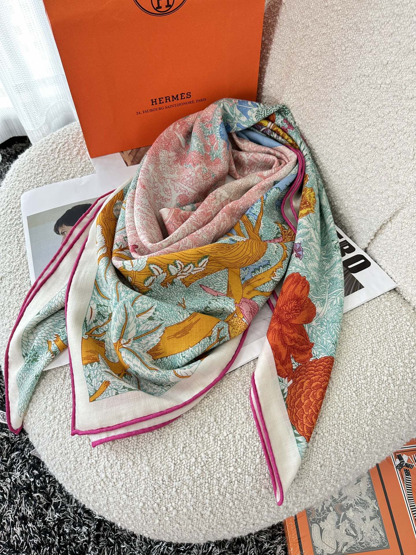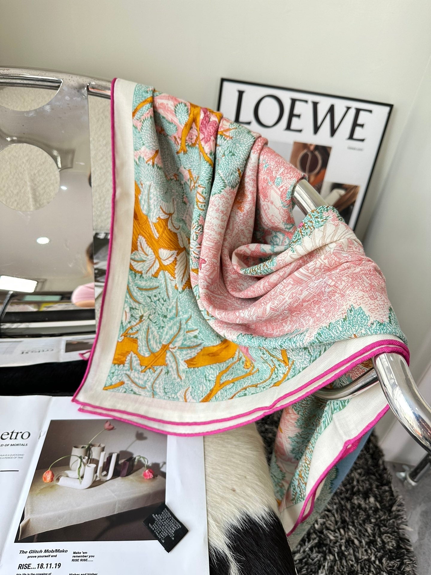 Retourala Nature Hermes Scarf 140 CM Green Gray Colorful Silk