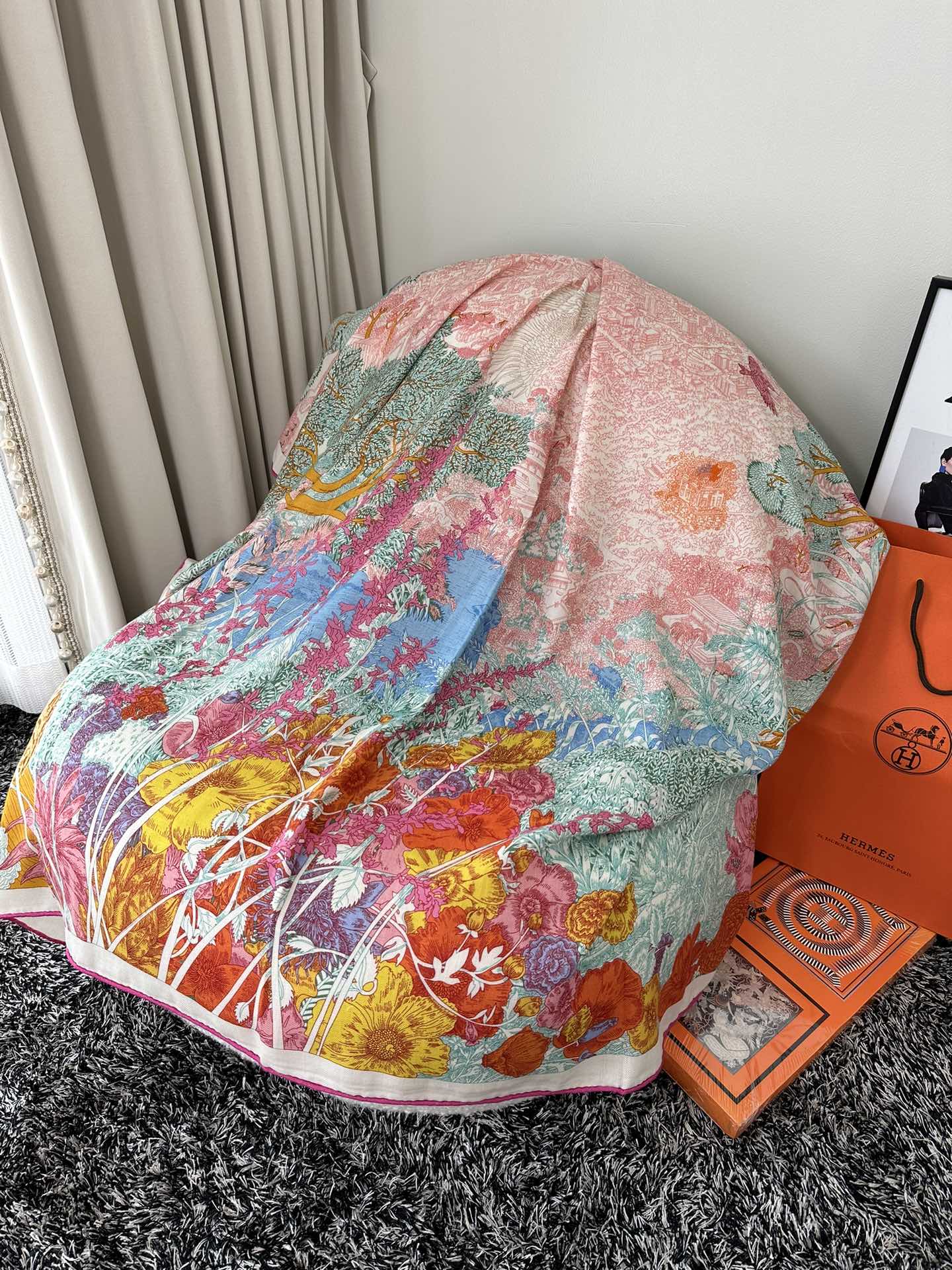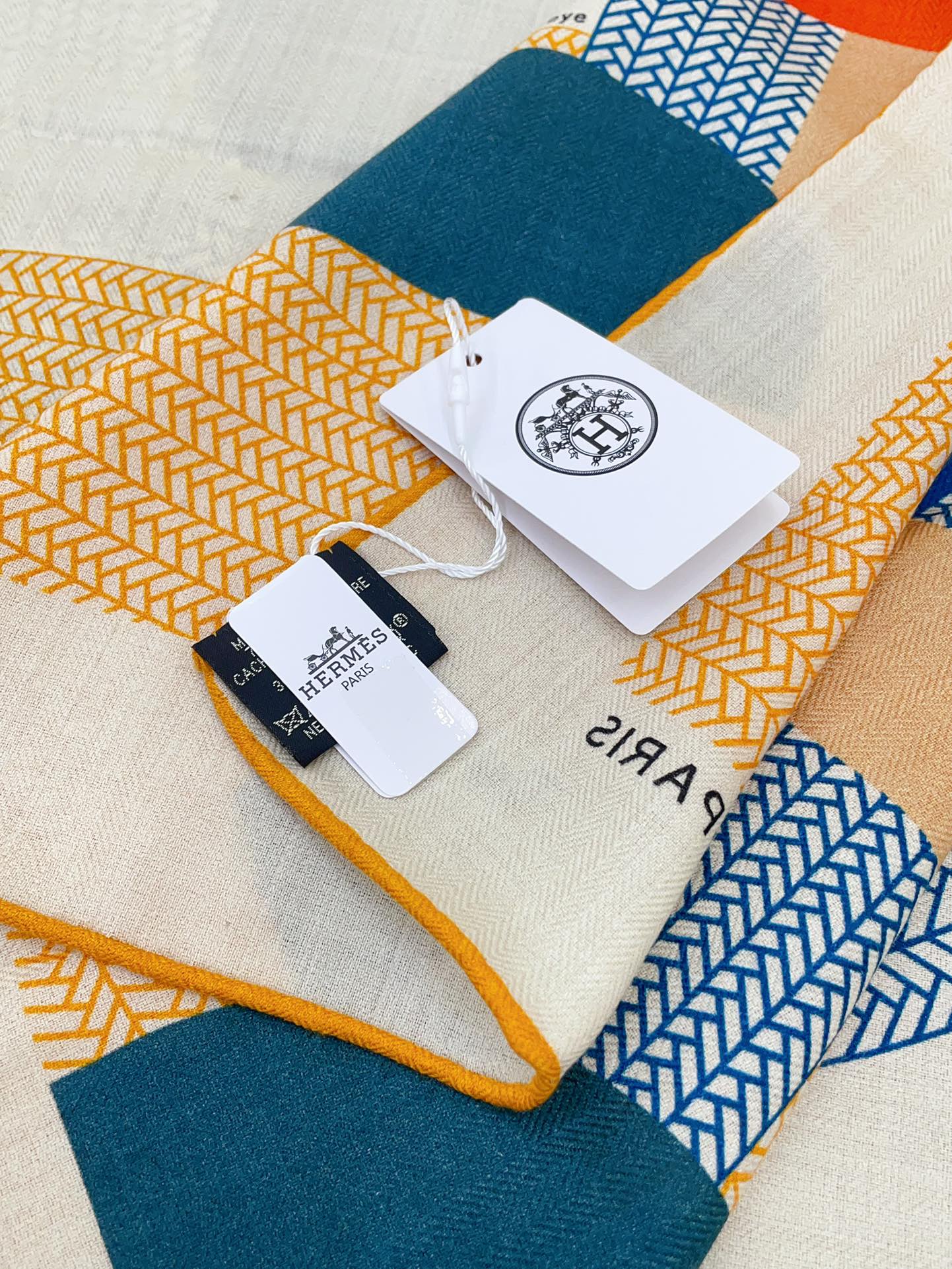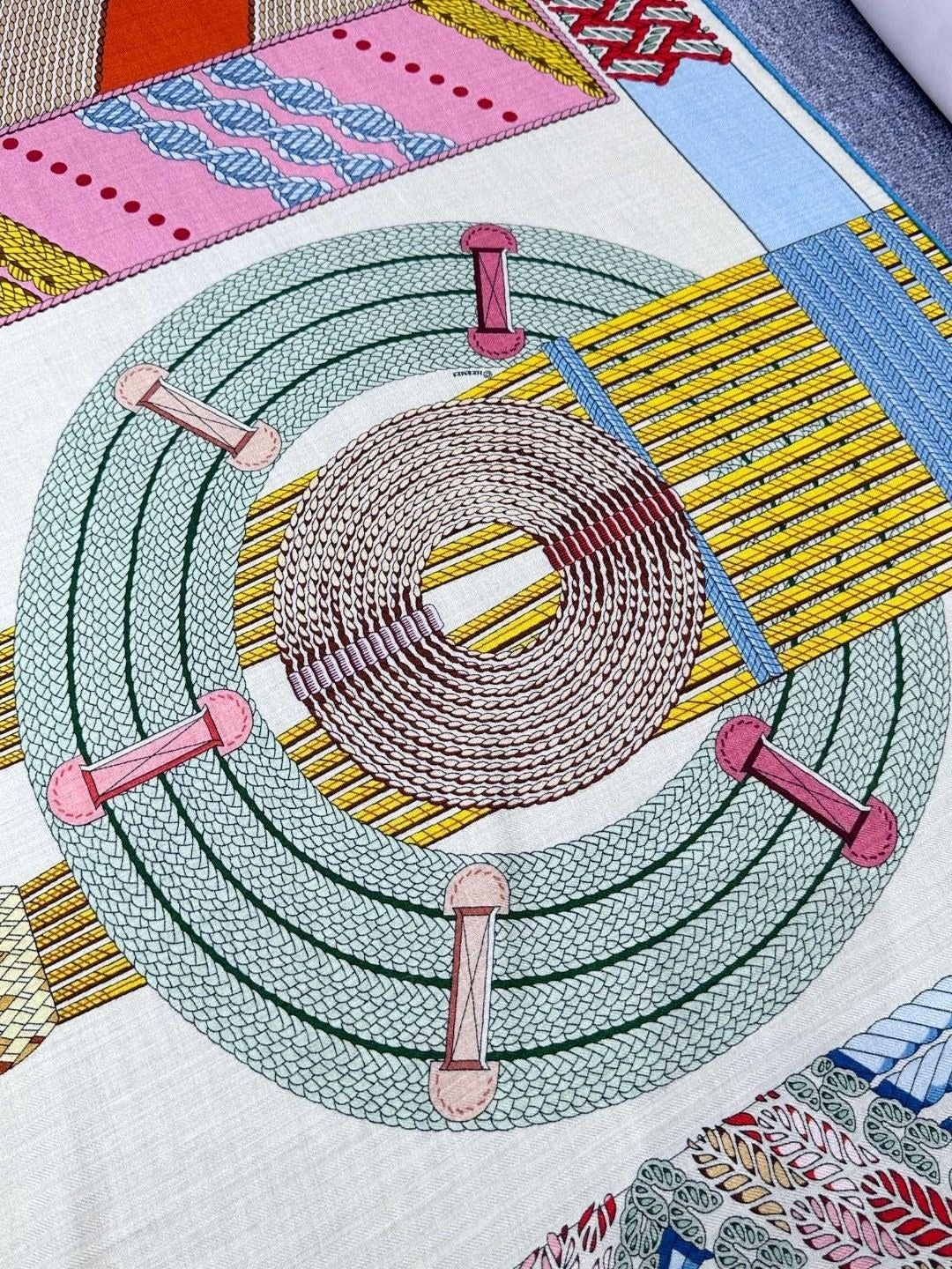 Retourala Nature Hermes Scarf 140 CM Green Gray Colorful Silk