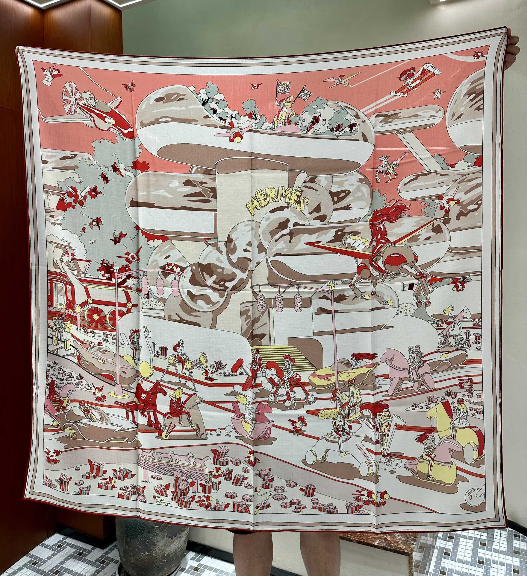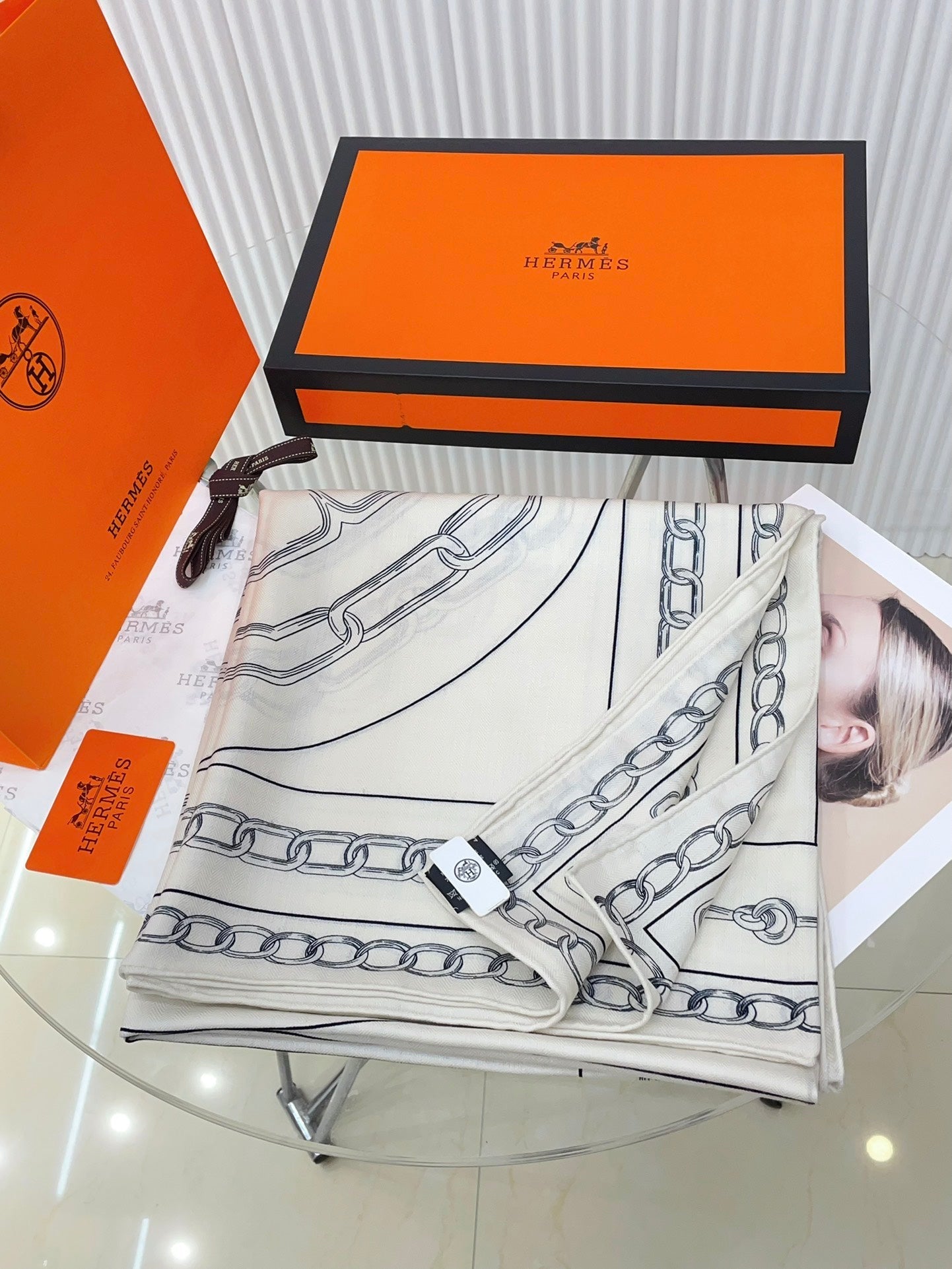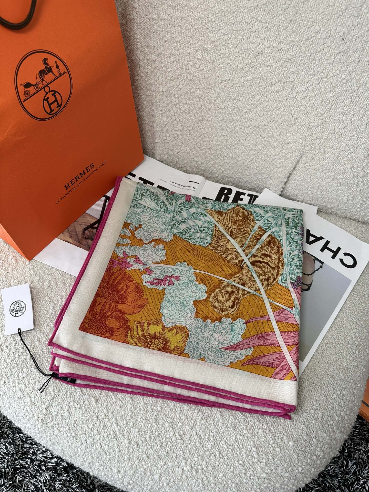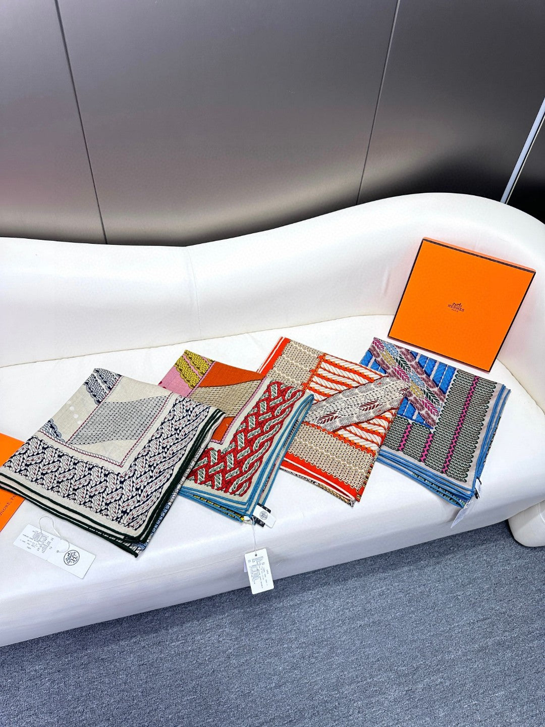 Retourala Nature Hermes Scarf 140 CM Green Gray Colorful Silk