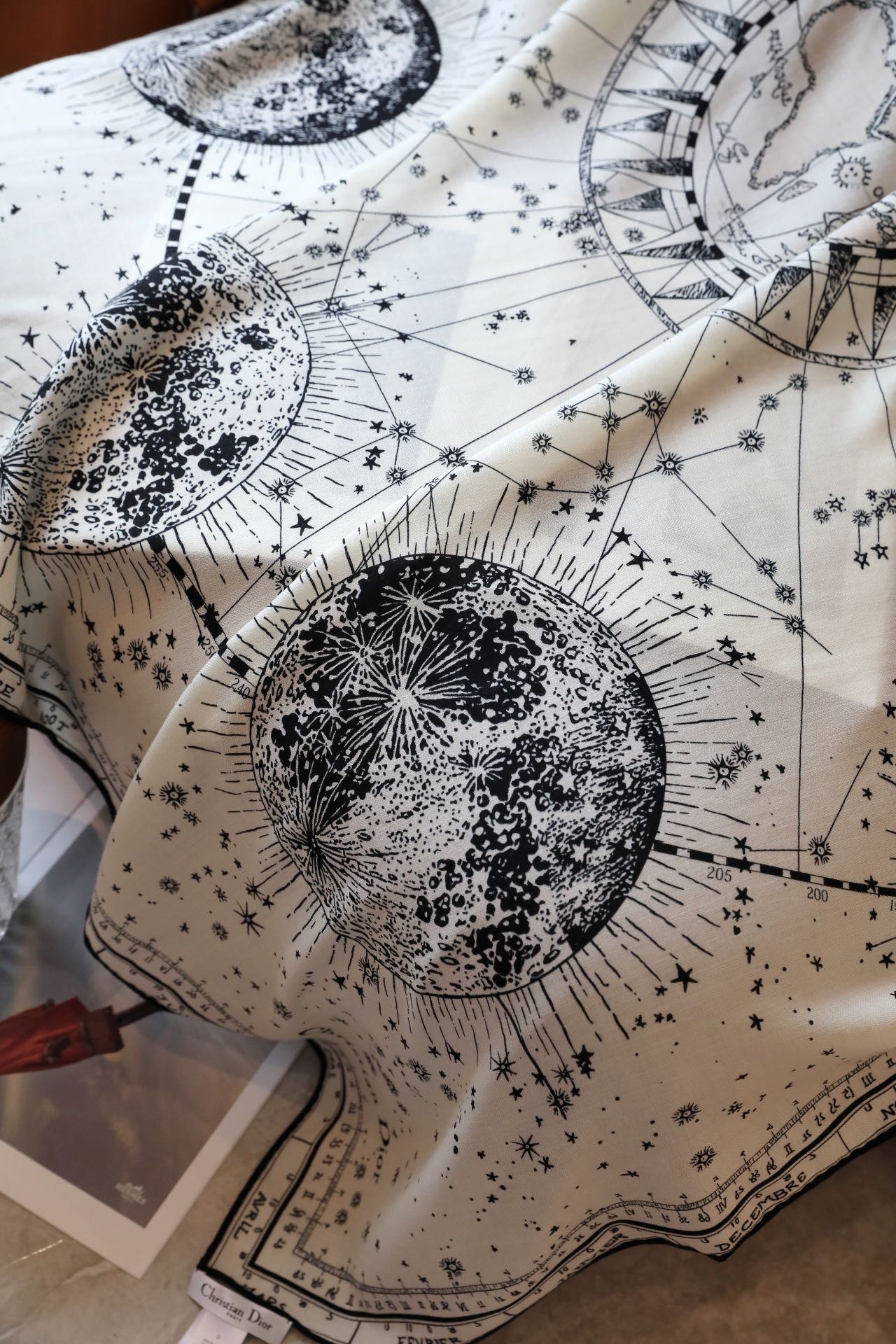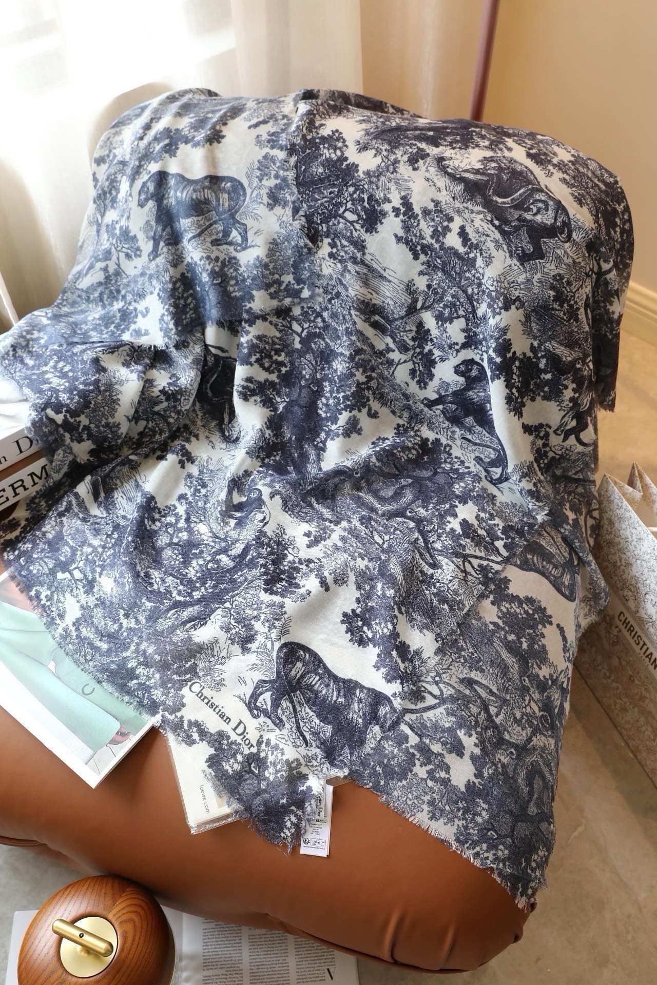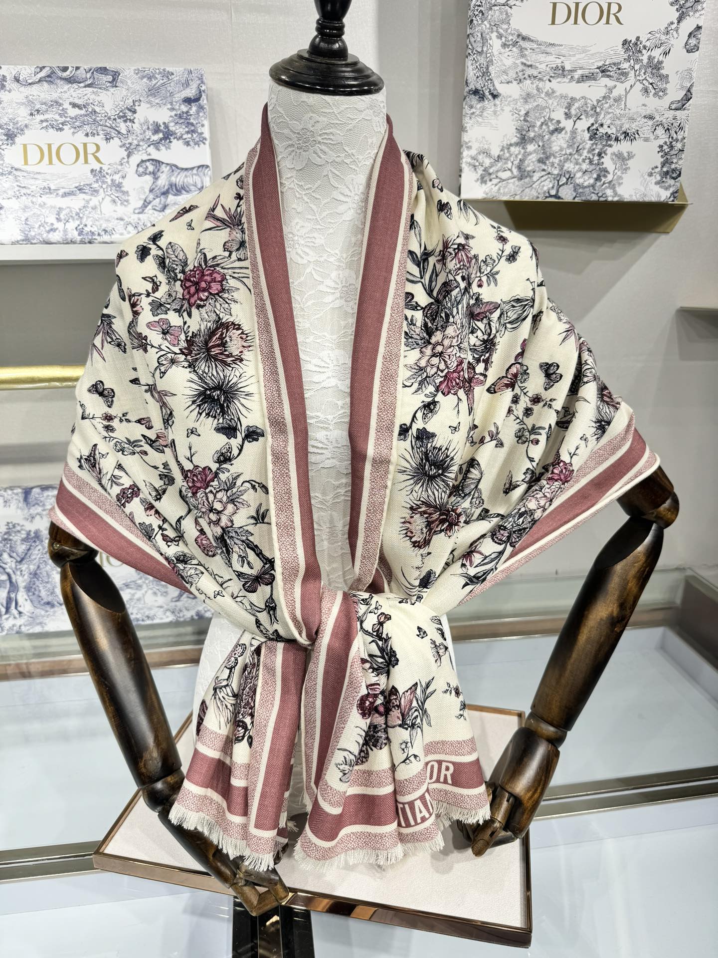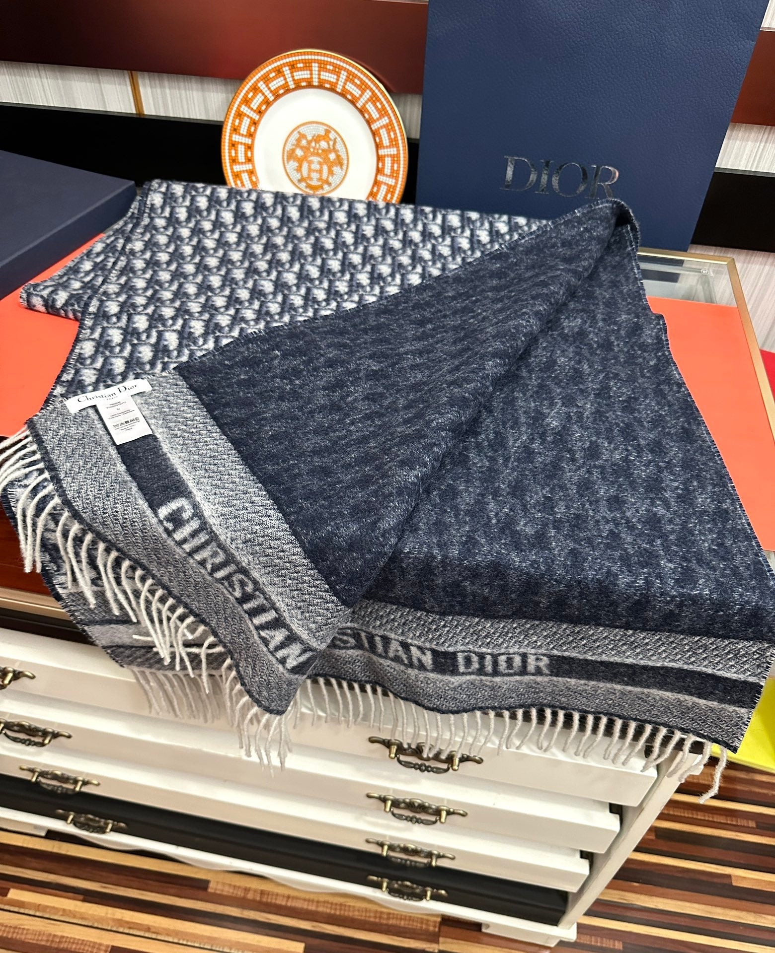 MISS DIOR ALLOVER SHAWL IN BLACK MIX WHITE SILK CASHMERE