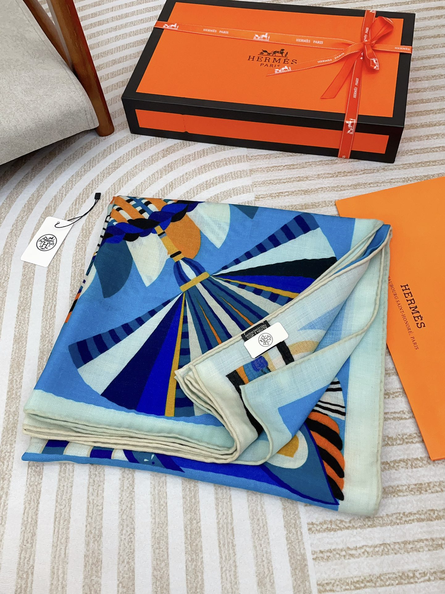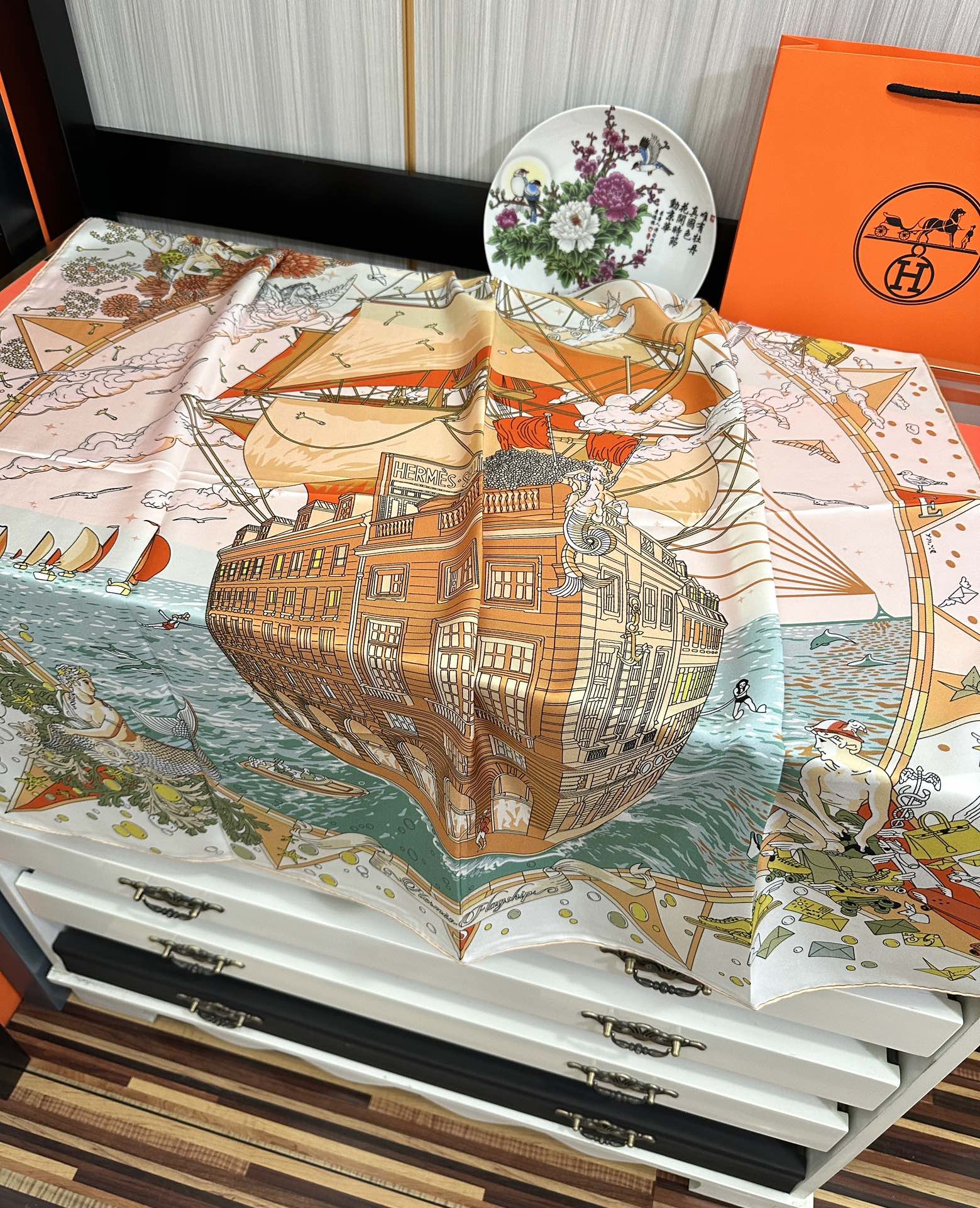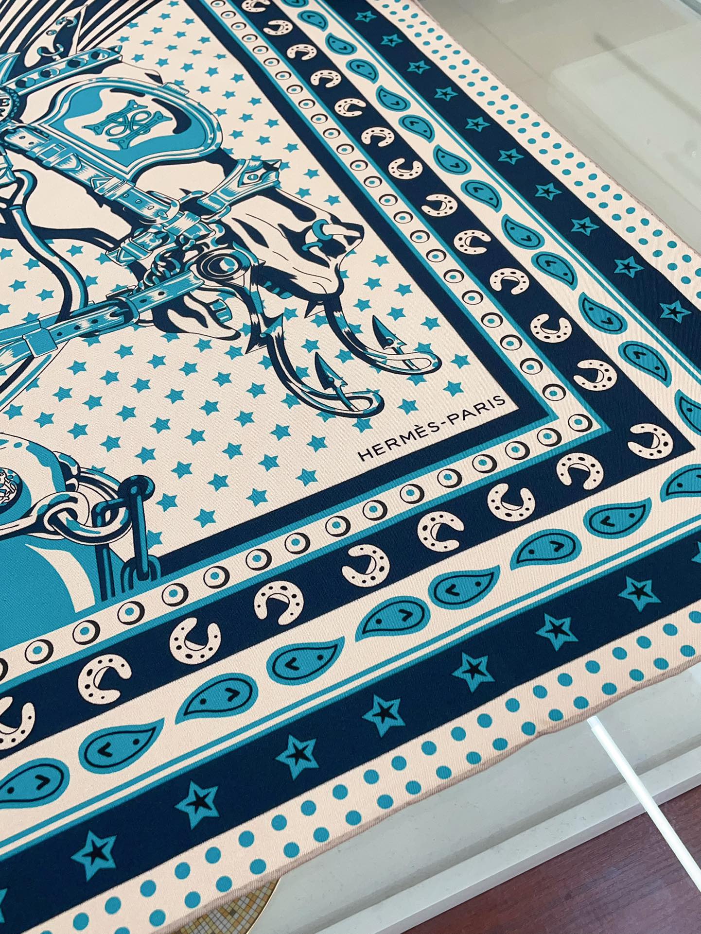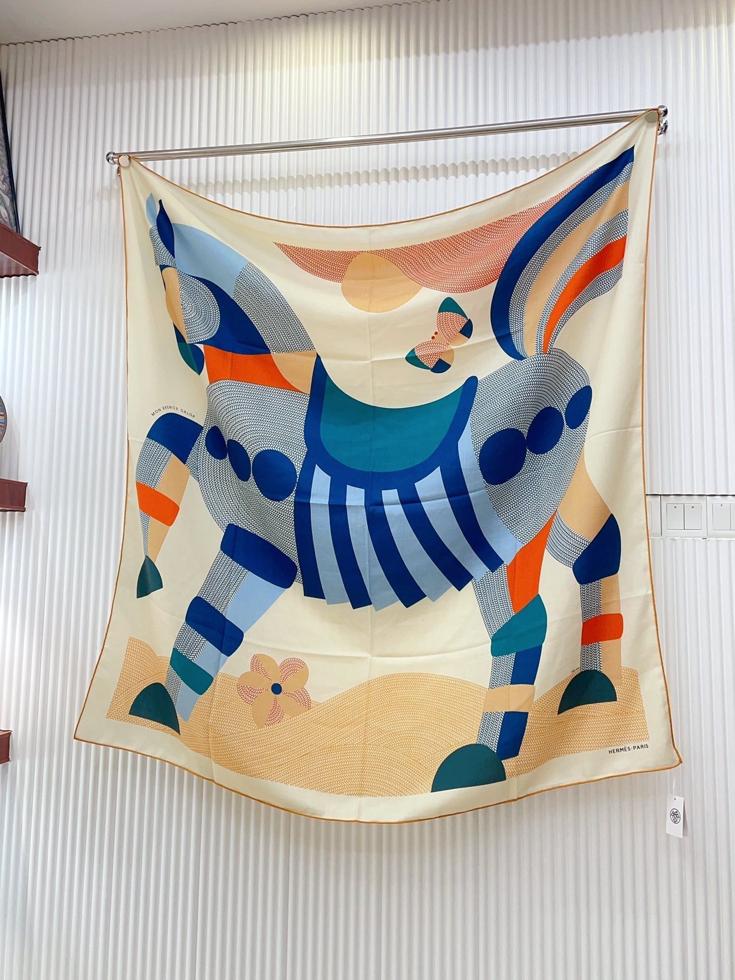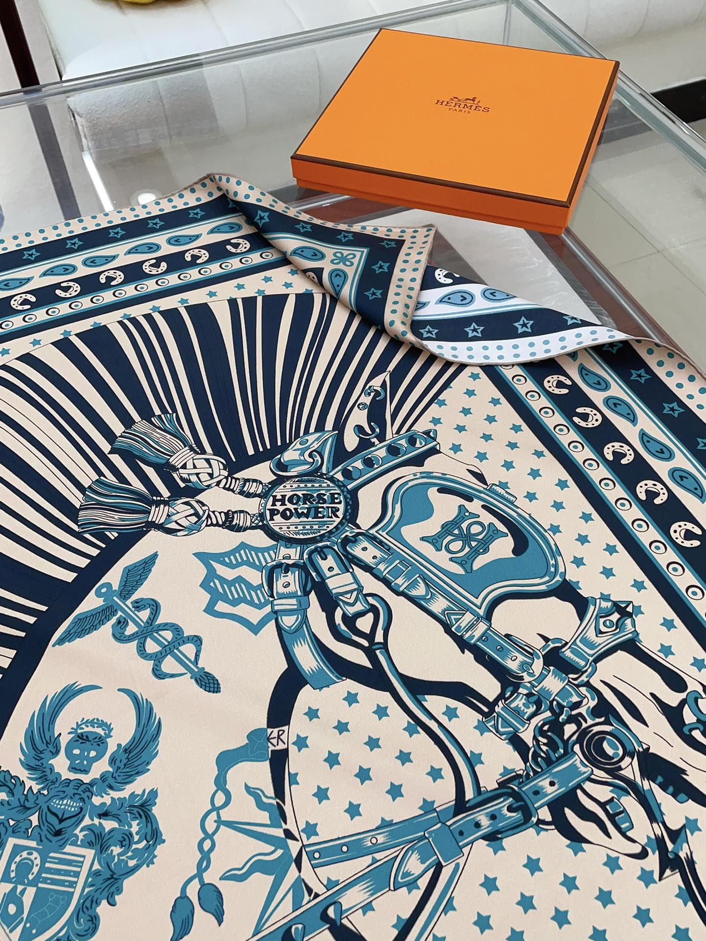 Retourala Nature Hermes Scarf 140 CM Turquoise Colorful Silk