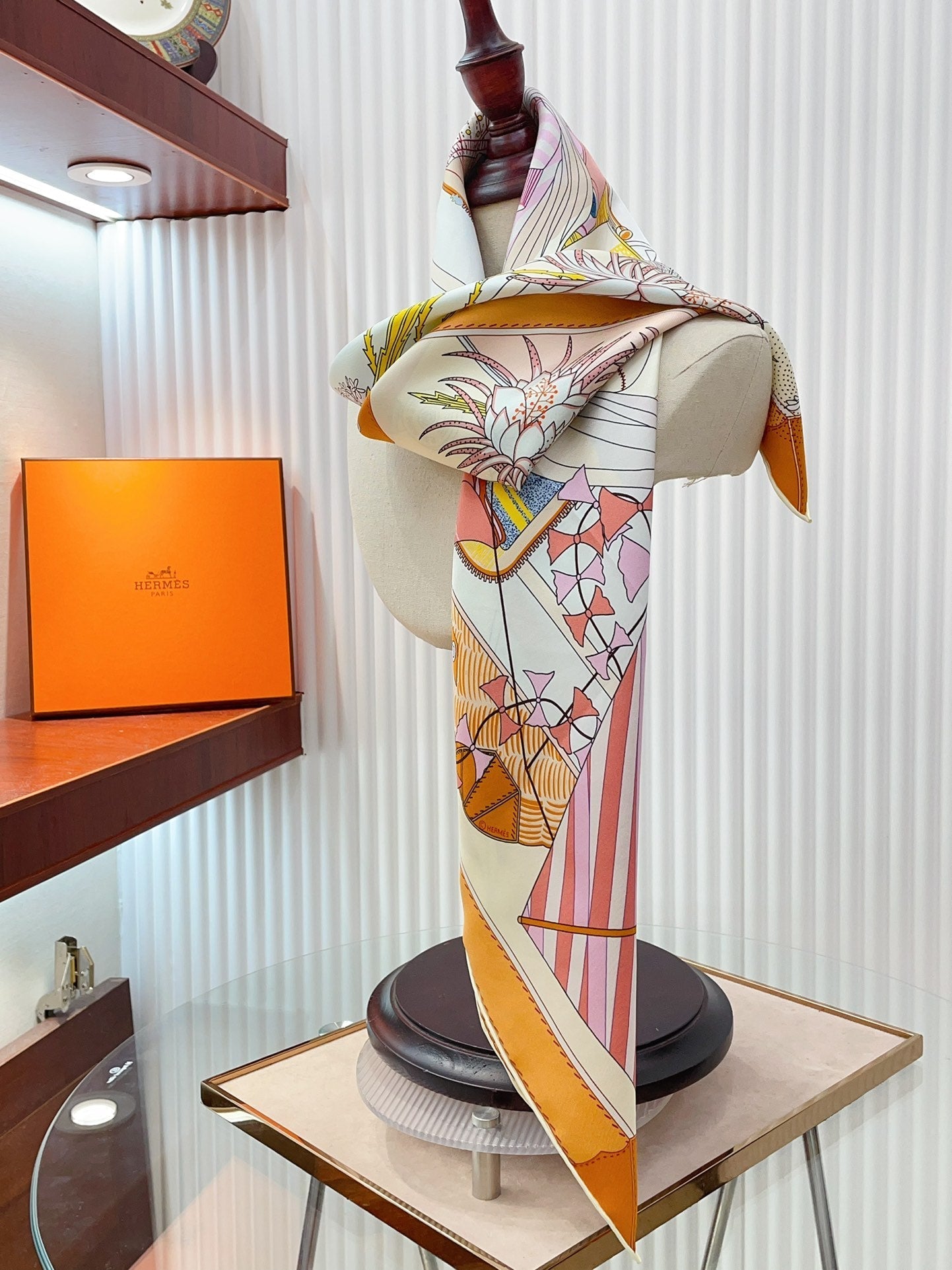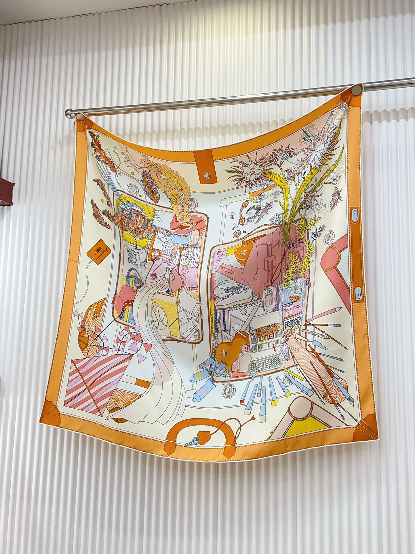 Carré Harnais De Cœur Scarf 90 CM In Orange Colorful Silk 306470