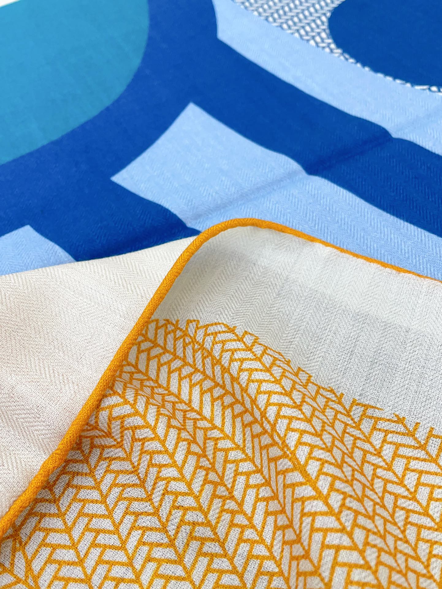 Haute Parure Scarf 135 CM Blue Colorful Cashmere And Silk 405069