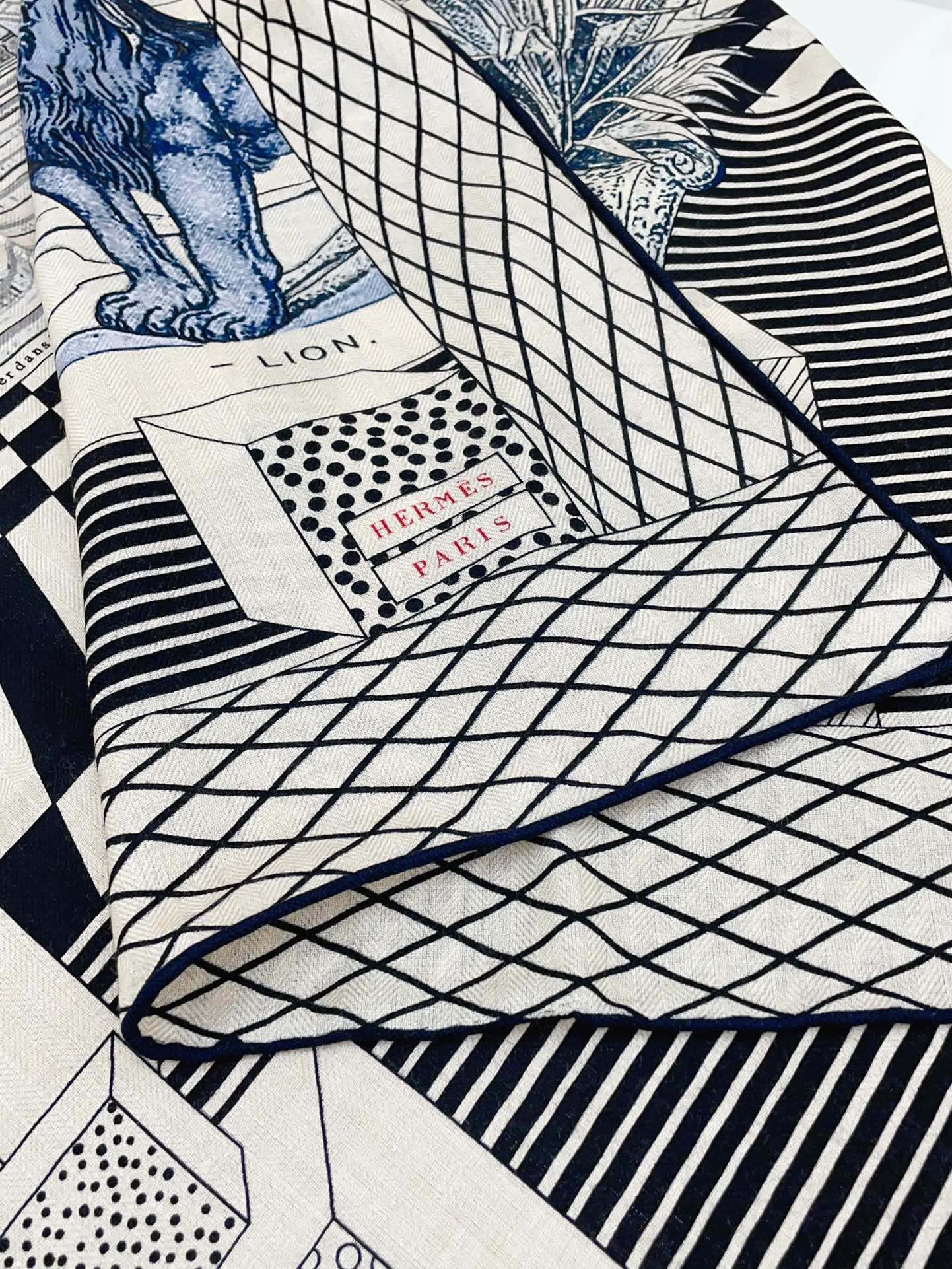 MONOGRAM SQUARE SCARF 140 CM IN BLACK MIX WHITE CASHMERE AND SILK 413742