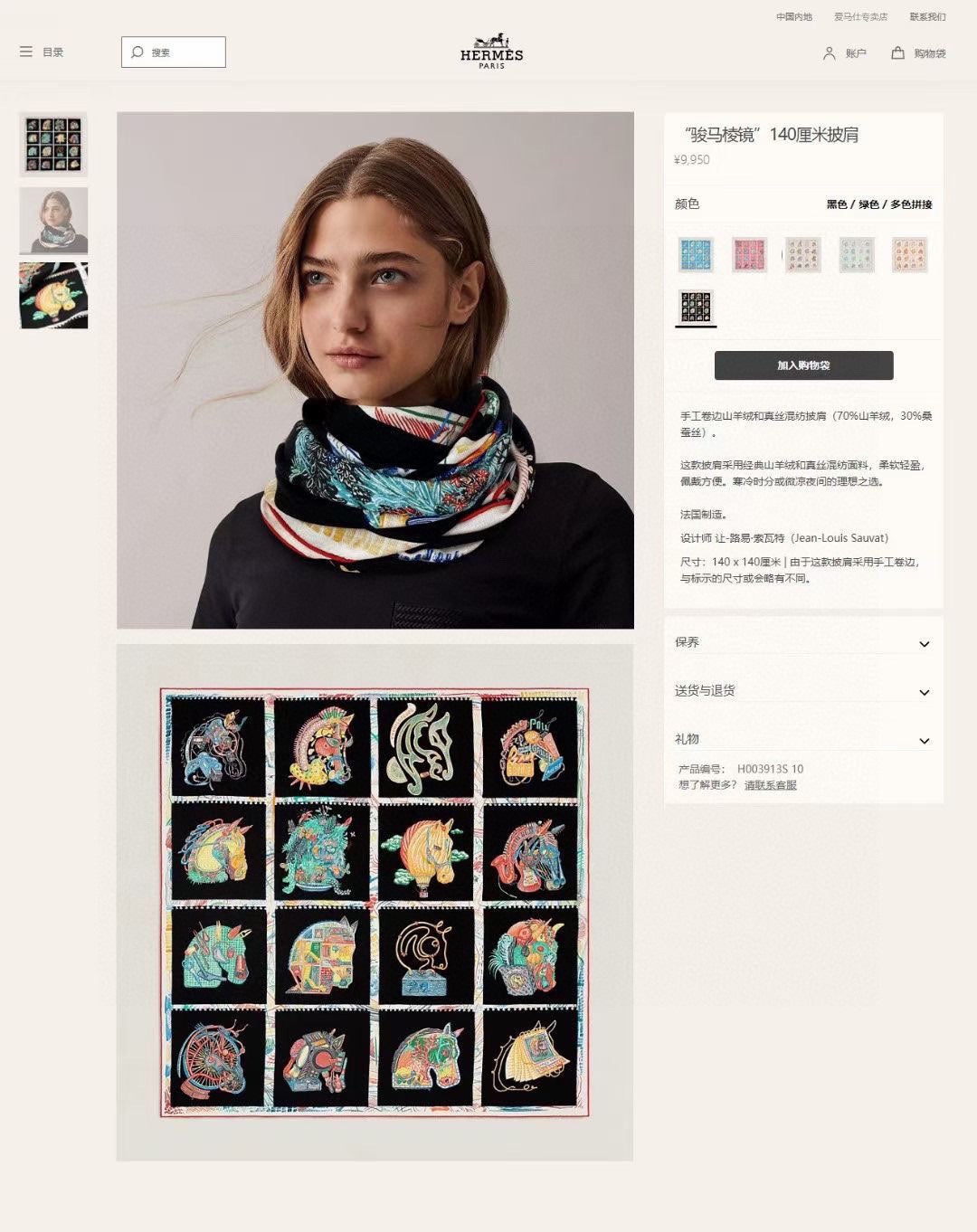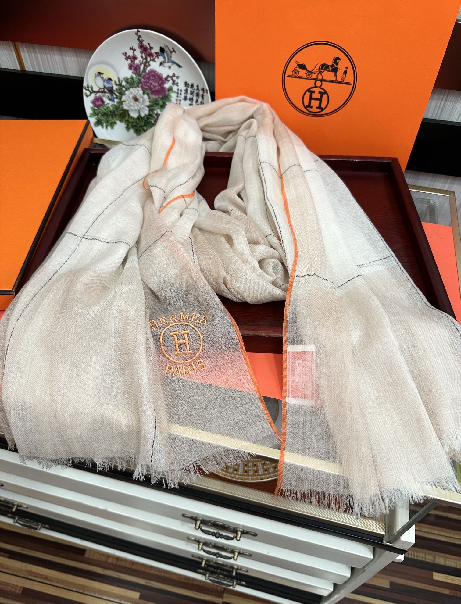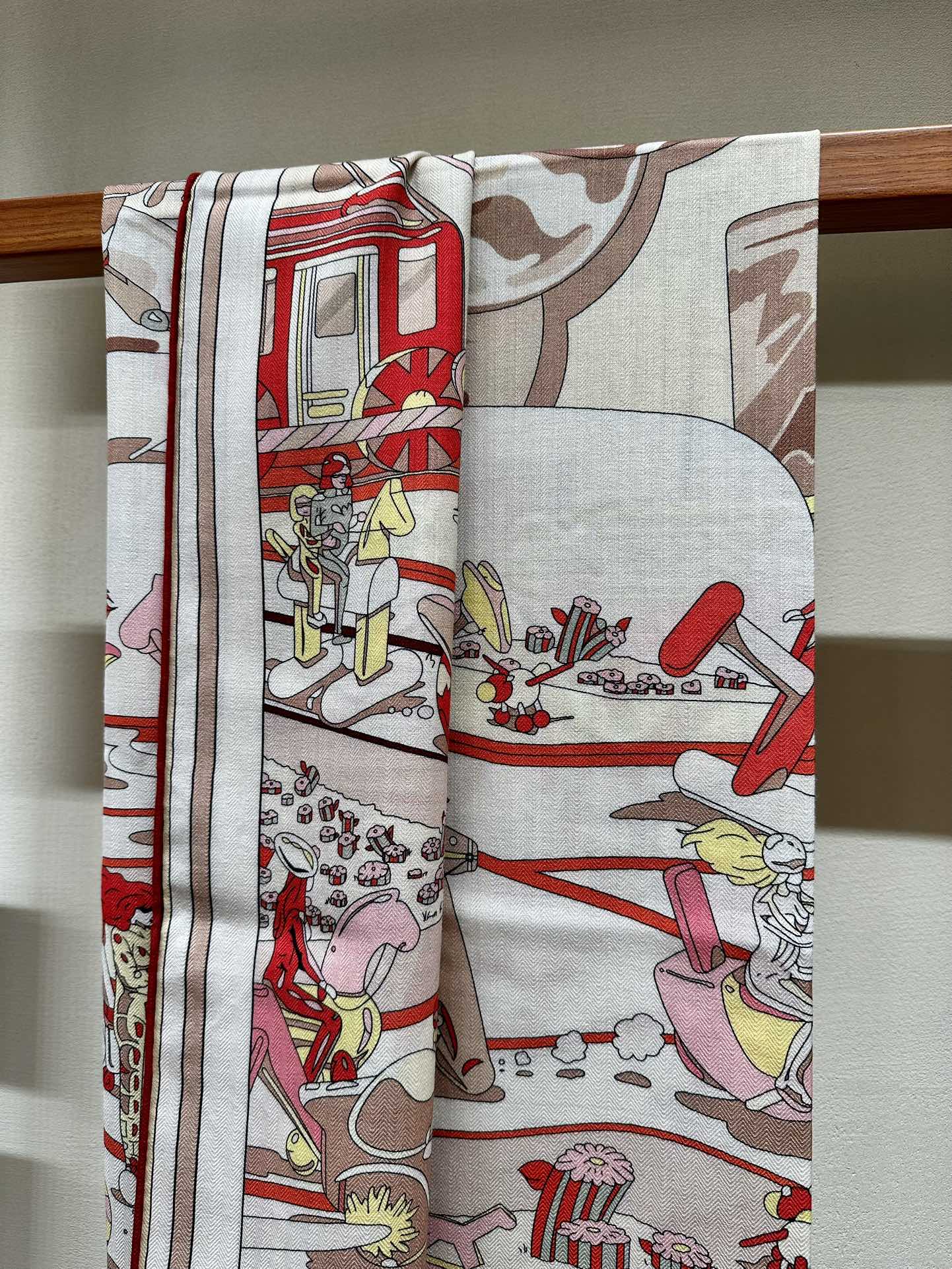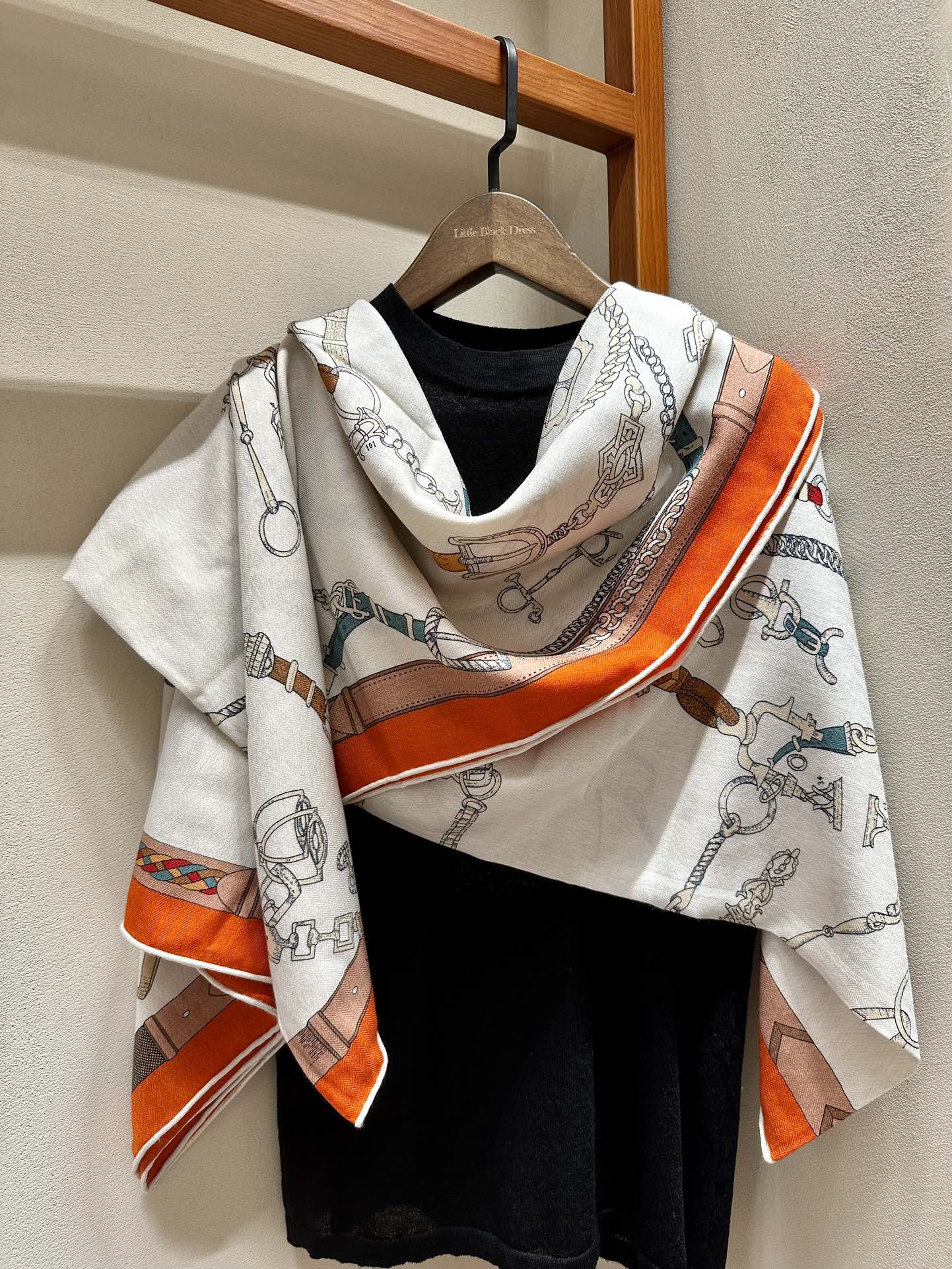 HM Lettres Equestre Scarf 140 CM In White Colorful Cashmere And Silk 359399