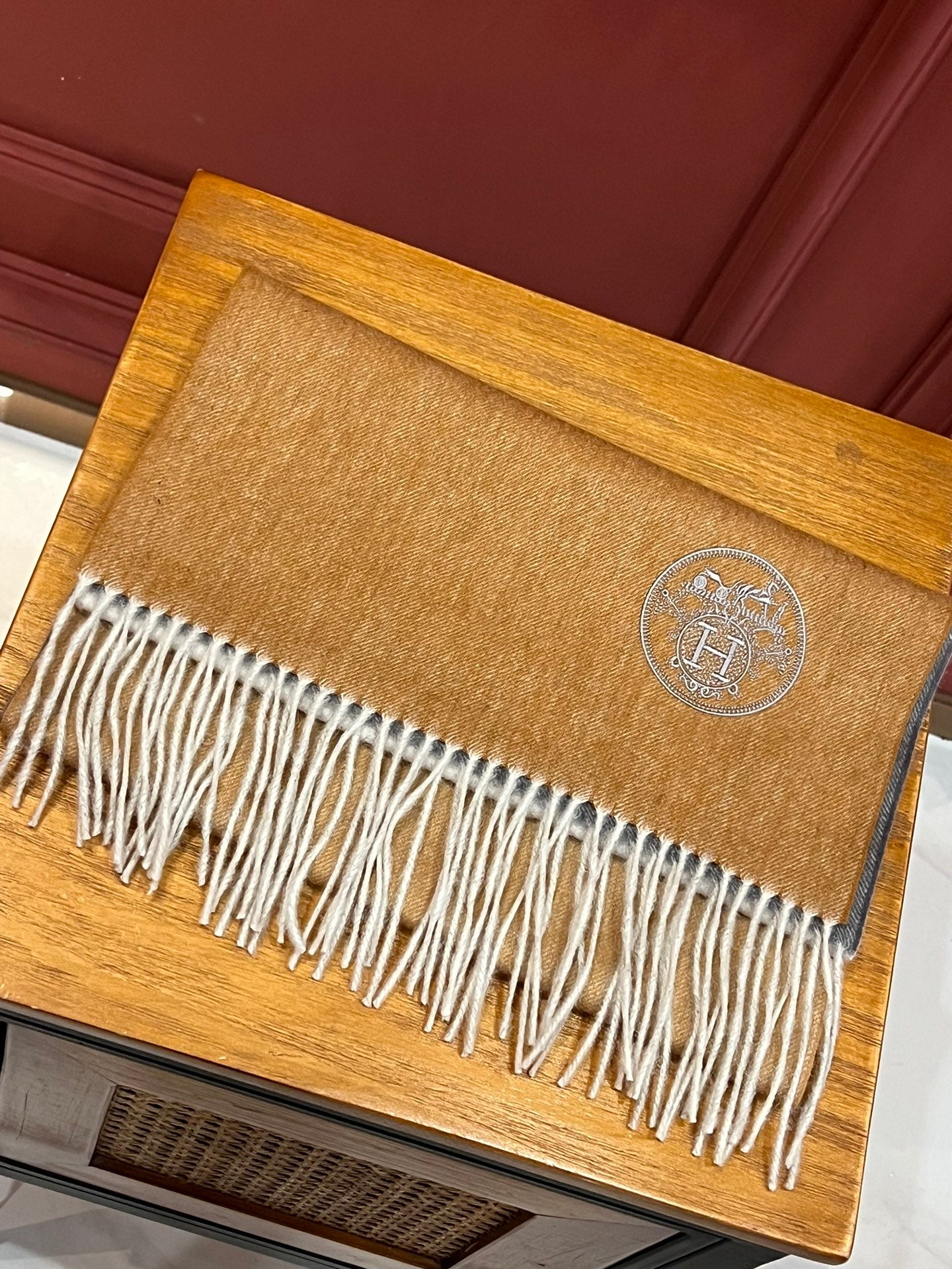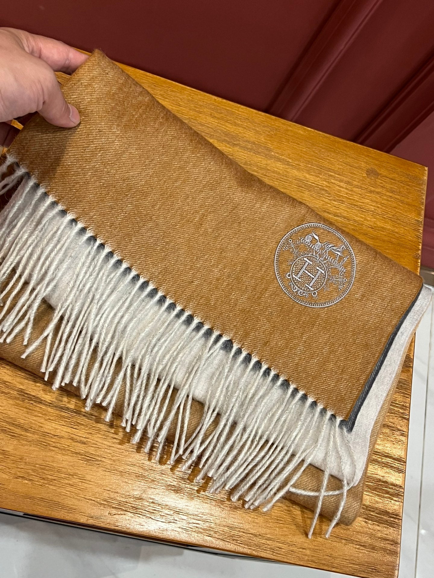 REVERSIBLE EKD SCARF 210 CM IN BLACK MIX CAMEL BEIGE CASHMERE 410182