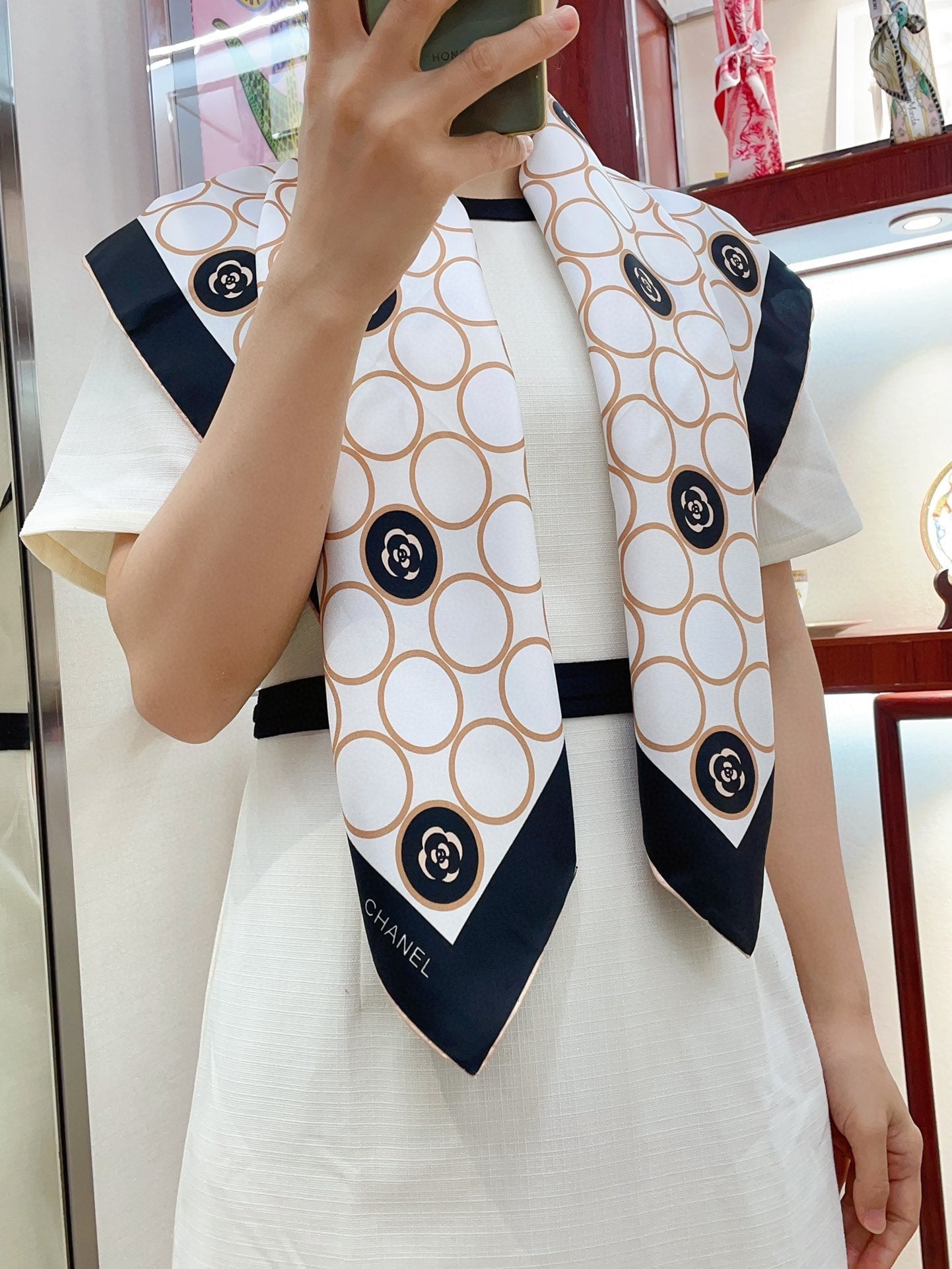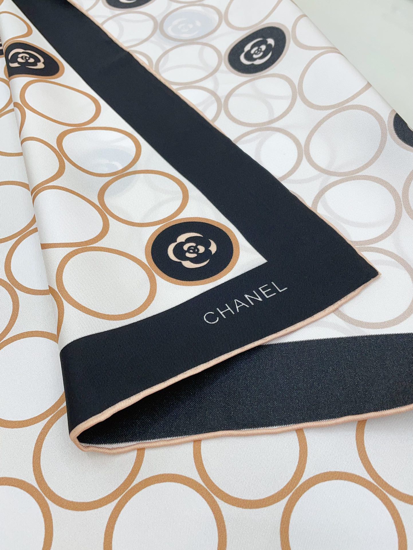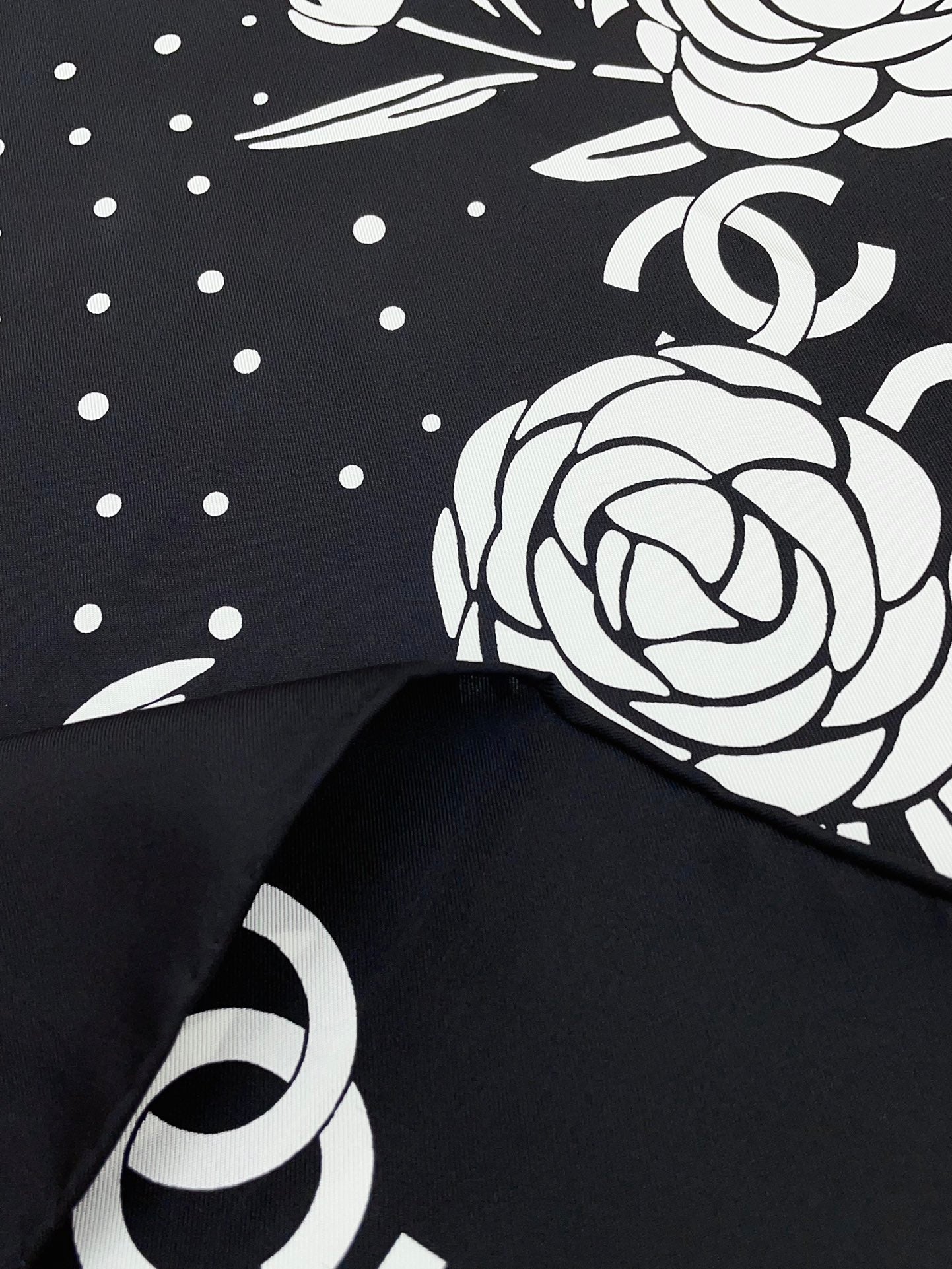 CC Square Scarf 90 CM In Black And White Camellia Logo Print Silk Twill 288740