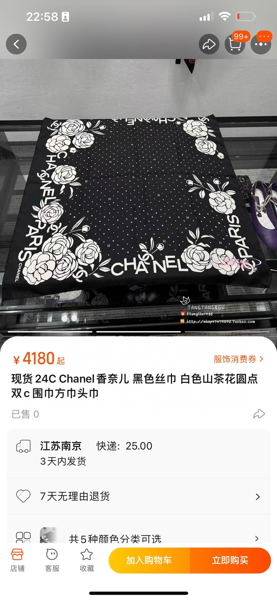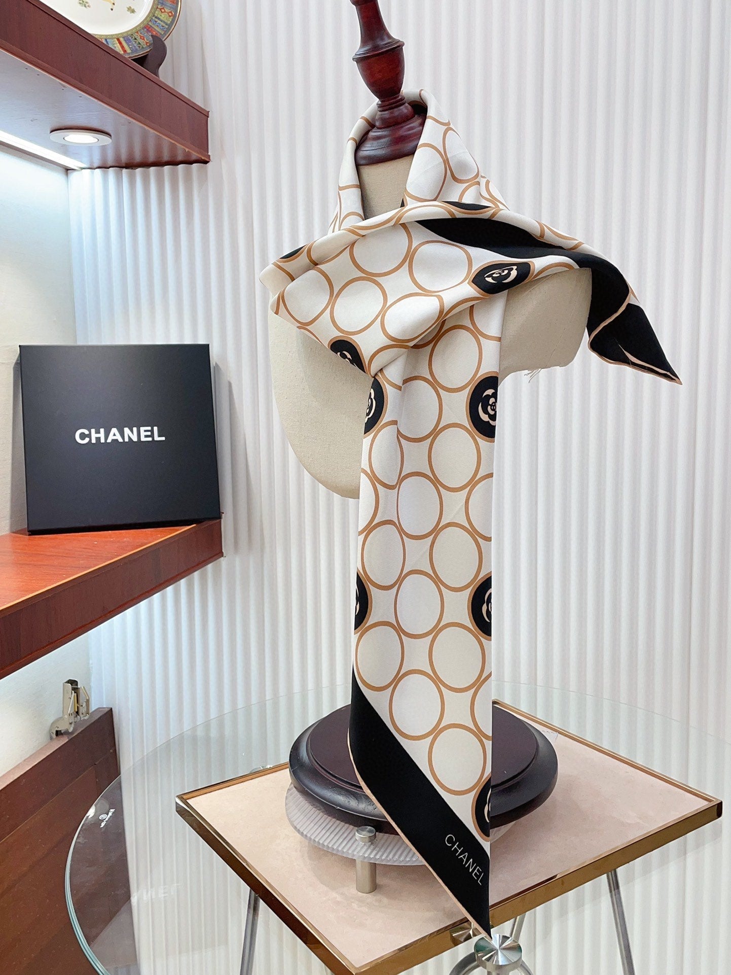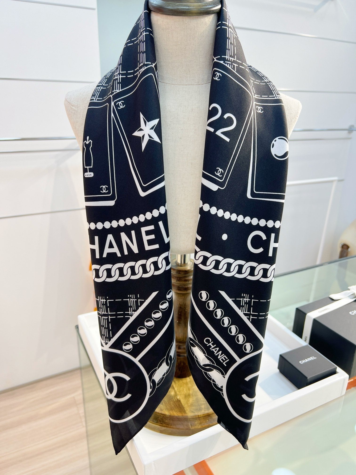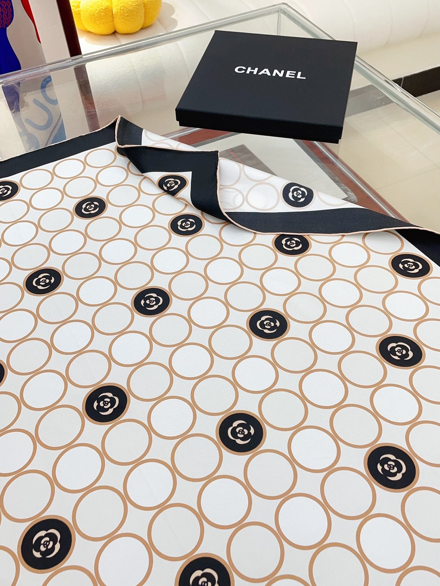 CC Square Scarf 90 CM In Black And White Camellia Logo Print Silk Twill 288740